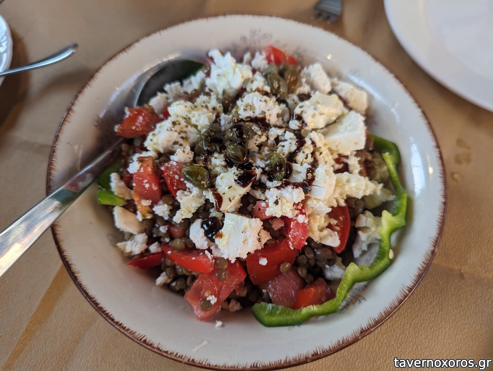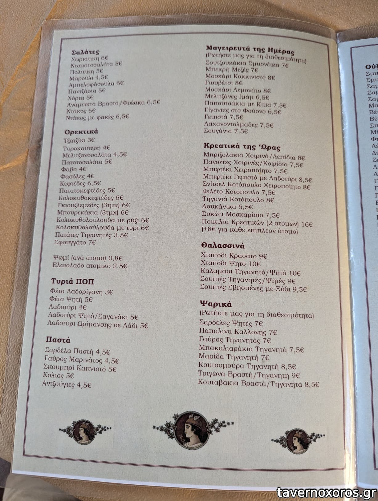 Στα του φαγητού, πήραμε αμπελοφάσουλα, κολοκυθολούλουδα με τυρί, γαύρο μαρινάτο, σαρδέλα ψητή και κουτσομούρες, όλα νόστιμα, χωρίς να ενθουσιάζει κάτι, οι τιμές σε μερικά πιάτα αδικαιολόγητα τσιμπημένες, ίσως επειδή έχει όνομα και μαζεύει και πολλούς τουρίστες.