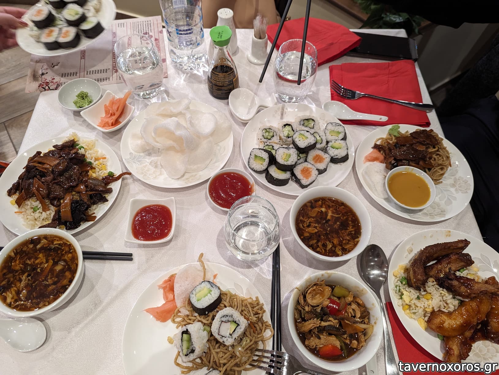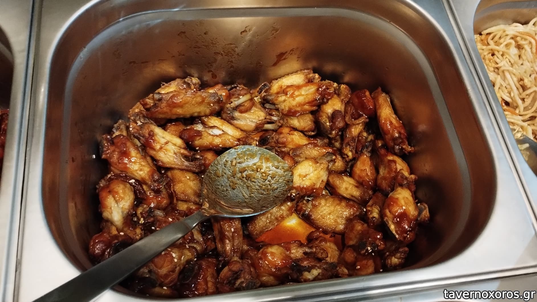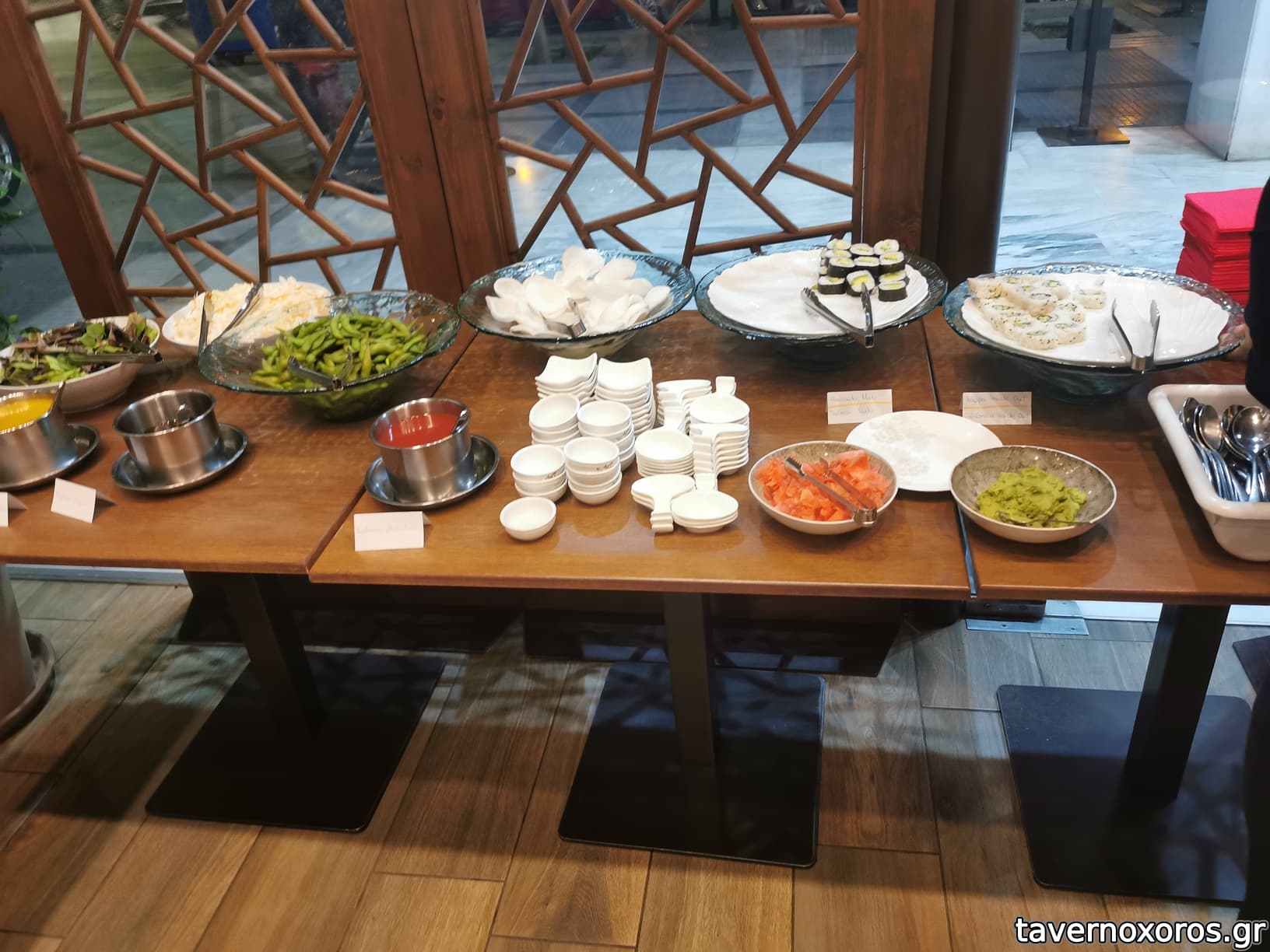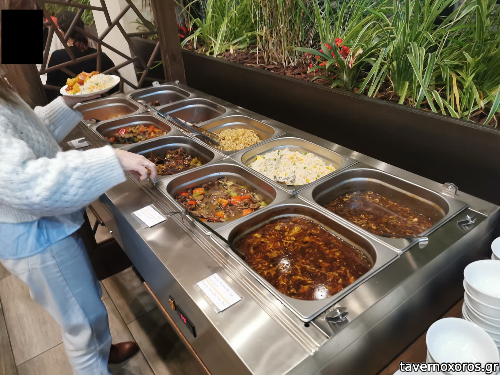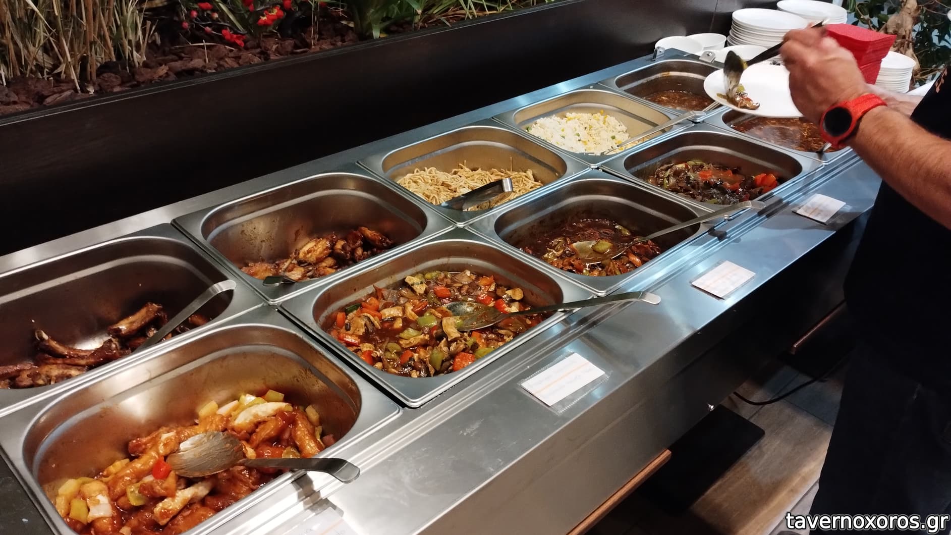 Ο μπουφές έχει τα πάντα, noodles, σούπες, κοτόπουλο, μοσχάρι, σούσι, σάλτσες, γουσσάμπι, τουρσί ginger, κάτι από σαλάτα, γενικά αρκετά πράγματα να δοκιμάσεις.
