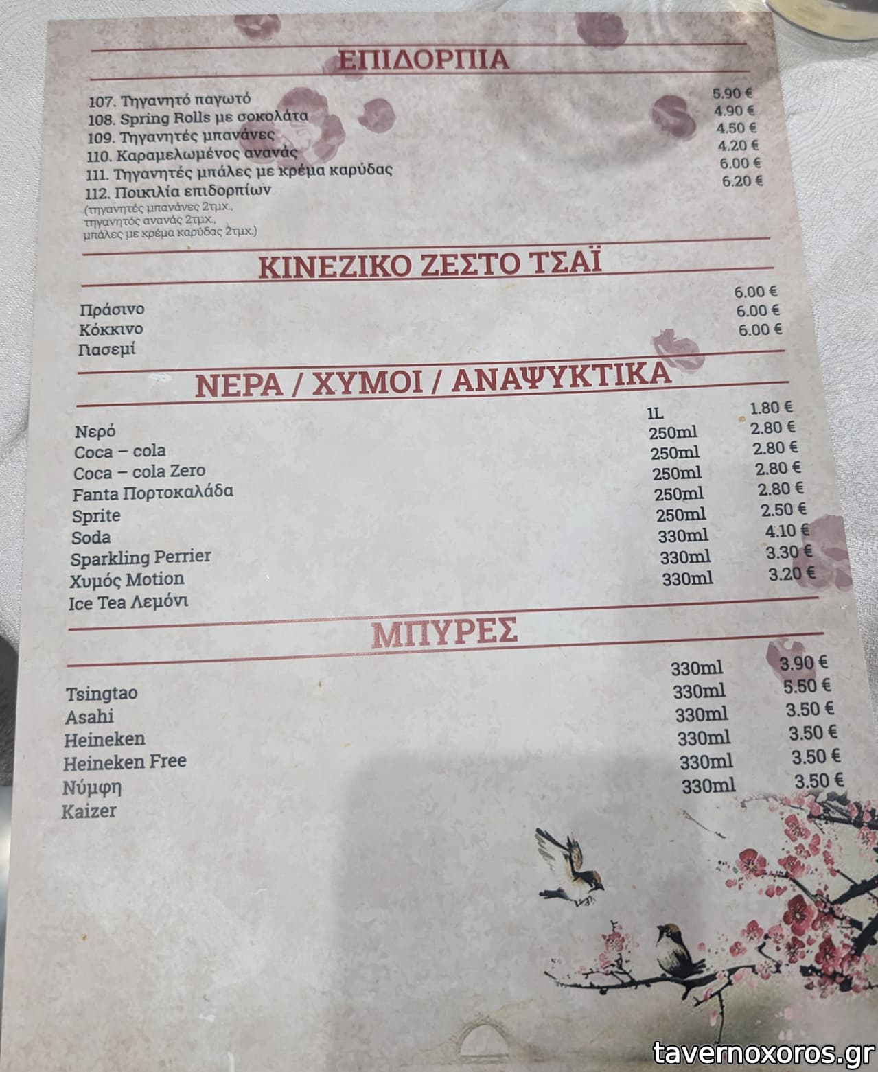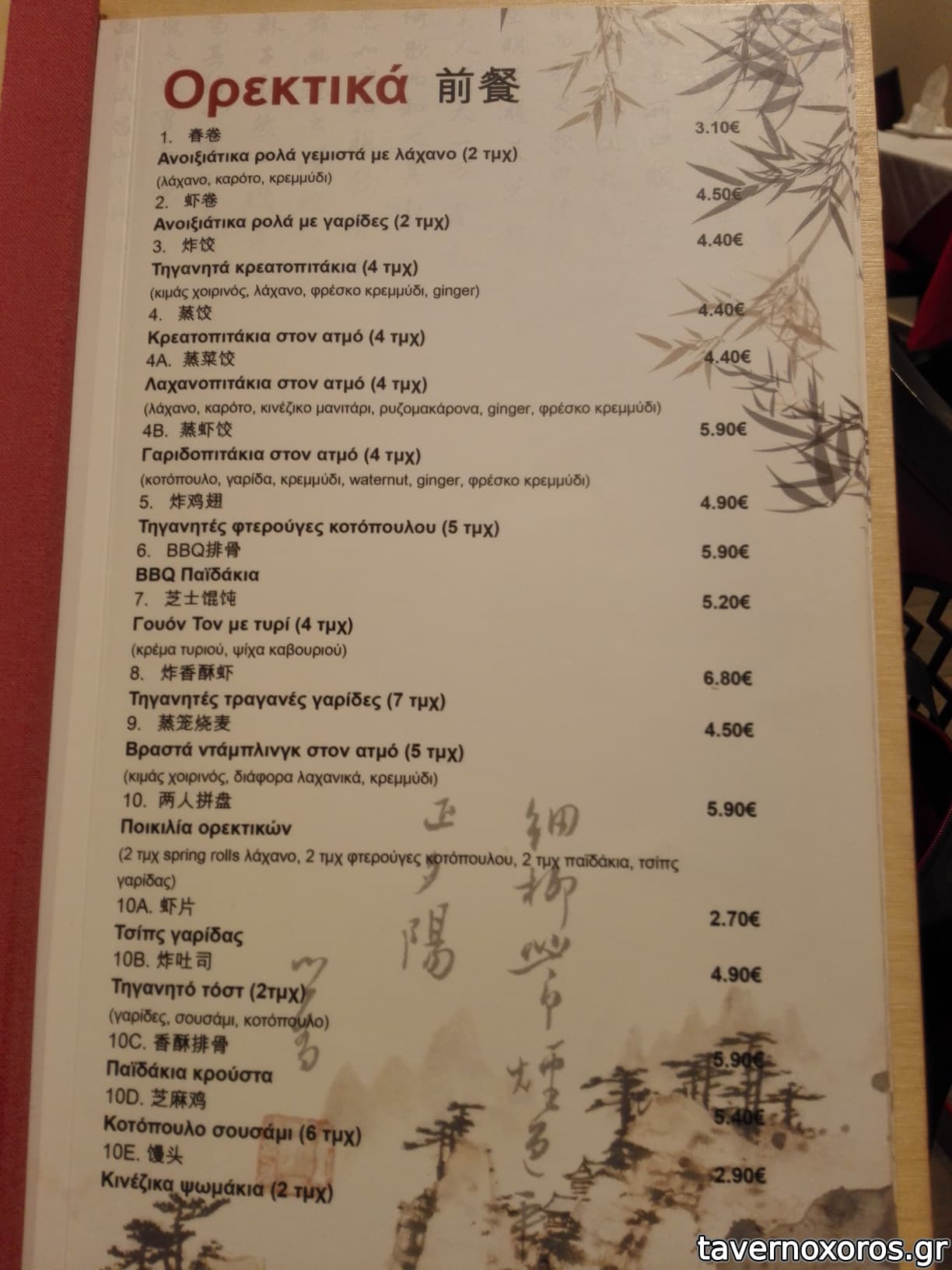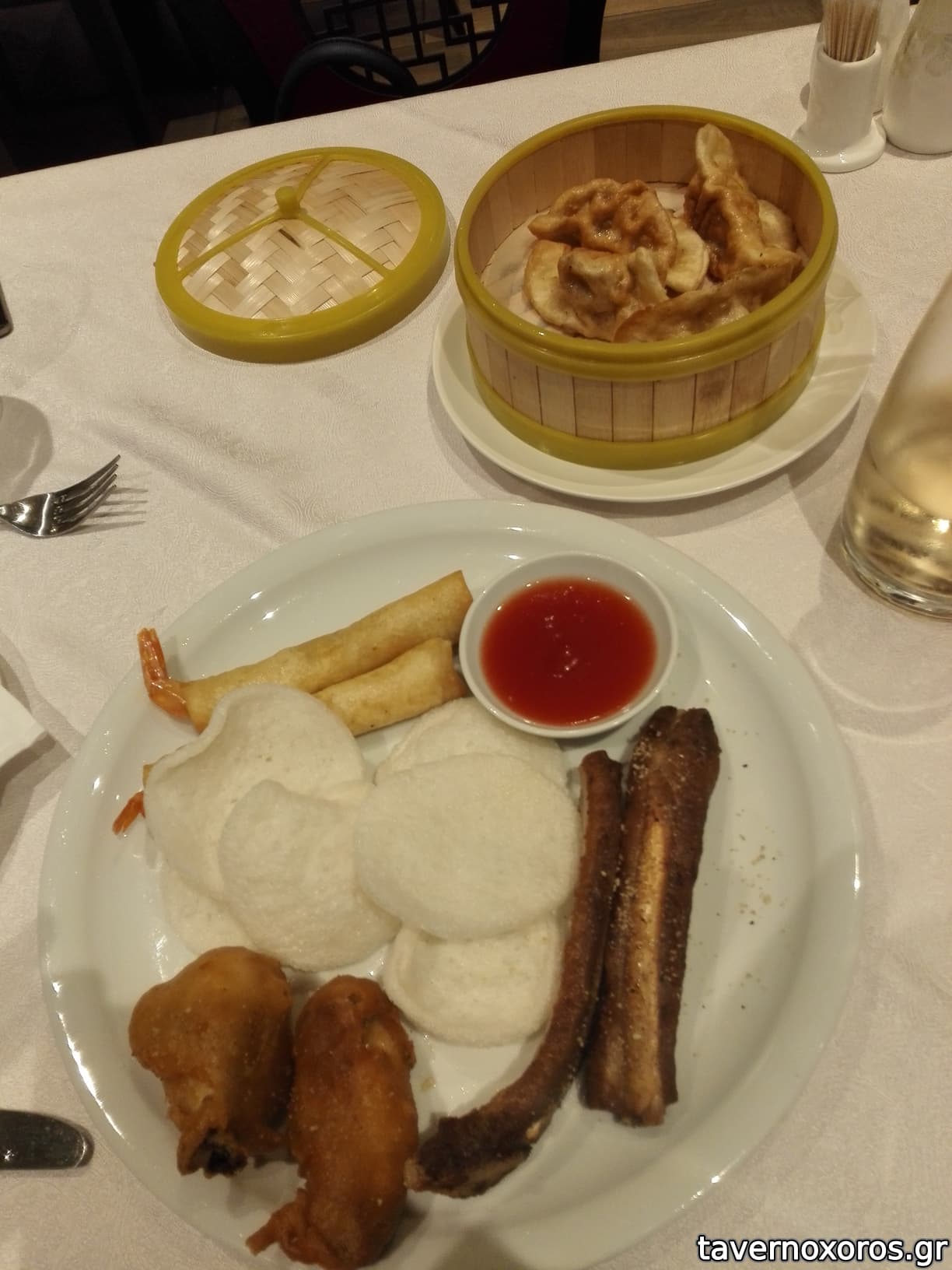 -Ποικιλια ορεκτικων (σπρινγκ ρολς, παϊδακια, τσιπς γαριδας), κακά. Οι ζυμες/το φυλο γενικα ηταν μουλιασμενα και πολυ μαλακα. Ασχημη υφη και Καθολου τραγανα. Η γεμιση ανουσια, εδειχνε μπαγιατικη και ξαναζεσταμενη, και γενικα διχως λογο υπαρξης. Οι σως ηταν κακες. Χειροτερες απ οτι στα μπουκαλακια του εμποριου.