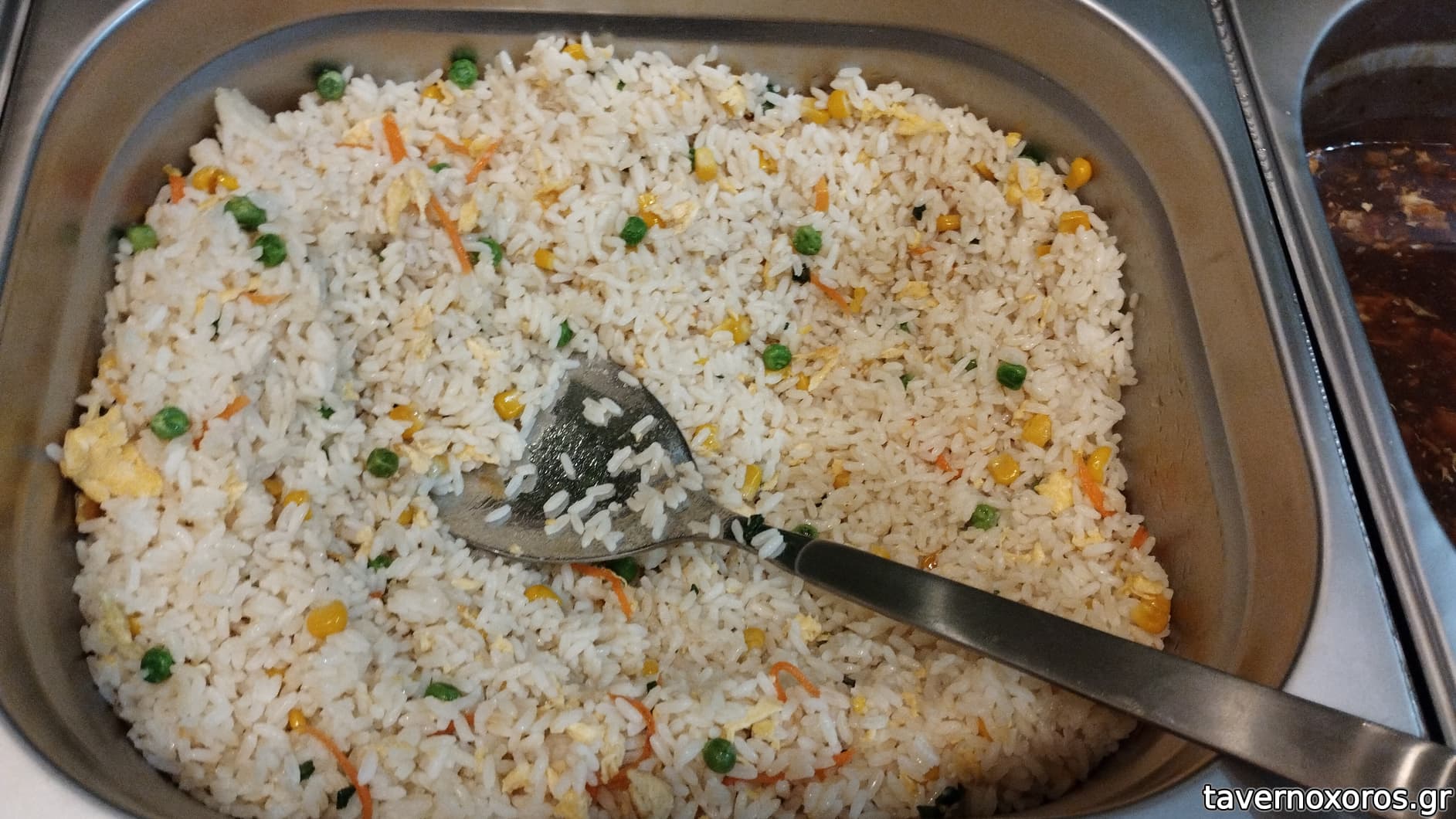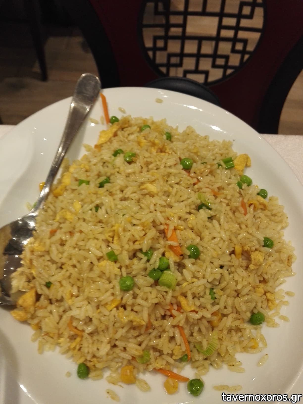 -Τηγανητο ρυζι με καρυ. Απλα οκ. Σπιτι το κανω πολυ καλυτερο. Ουτε τηγανητο μου θυμιζε, ουτε και εβγαζε καποια εσανς ανατολιτικη. Αν ειχαν σκοπο να ριξουν σησαμελαιο, μαλλον το ξεχασαν στο πιατο μας..