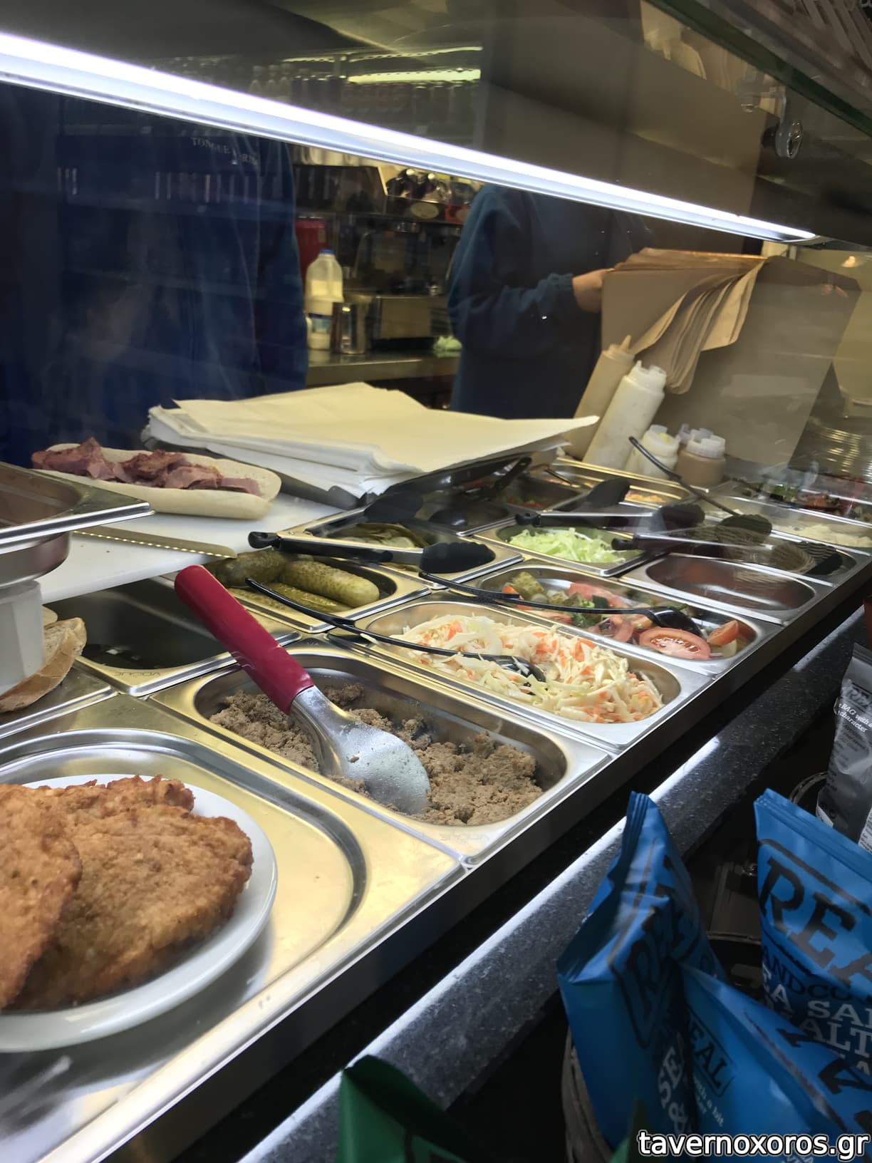 Και τα 3 παραπάνω σερβίρονται σε bagel ή μπαγκέτα, με pickles και μουστάρδα. Τίμιο και πολύ στοχευμένο.