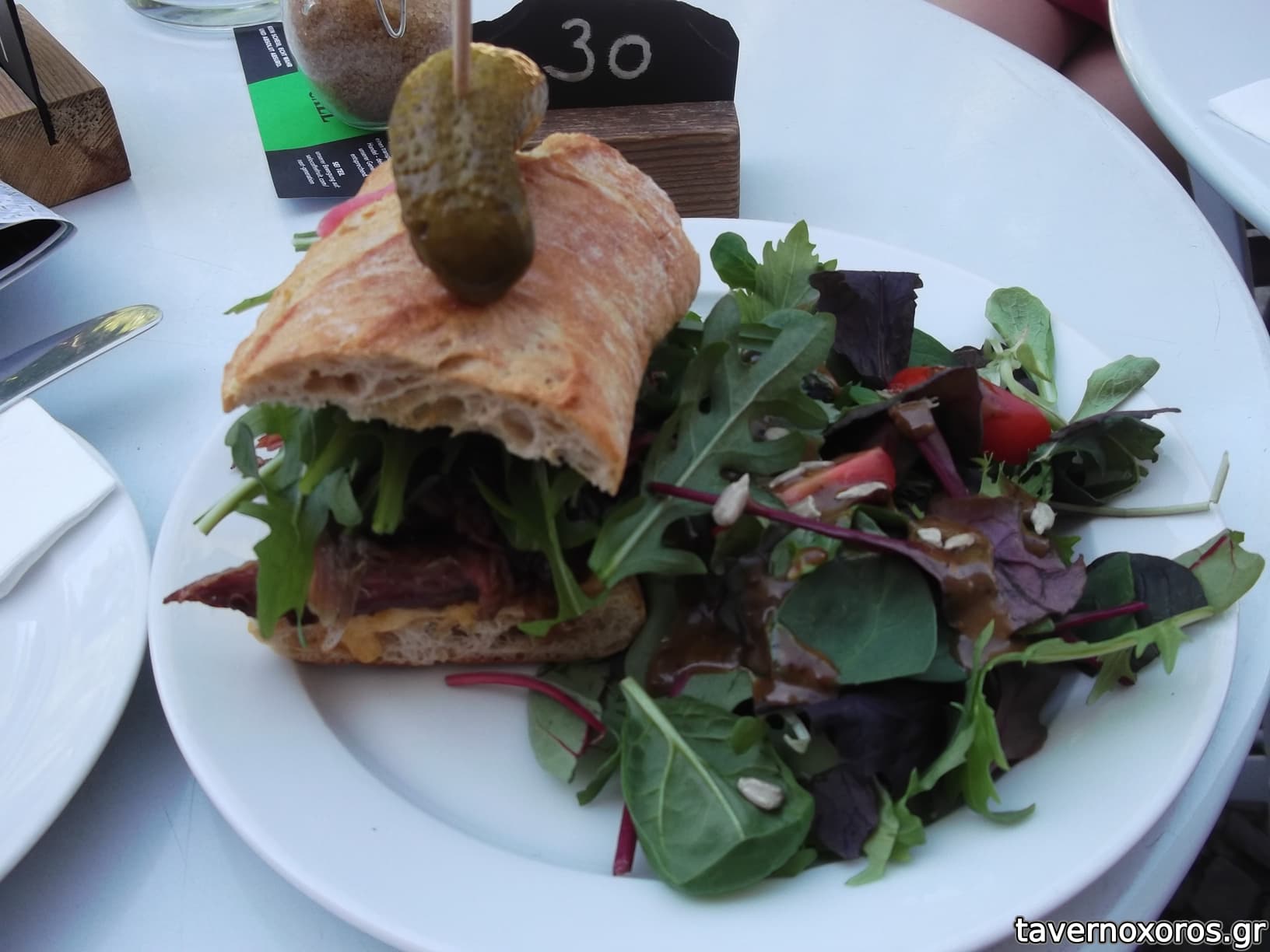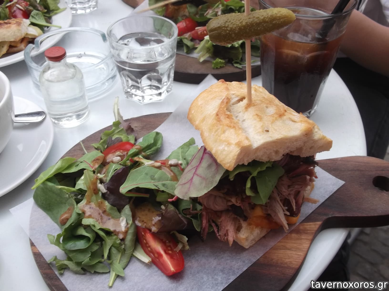 The Boulevard (pulled pork, spiced apple chutney, pink onions, red pepper cheese spread, rocket, baguette, side salad)