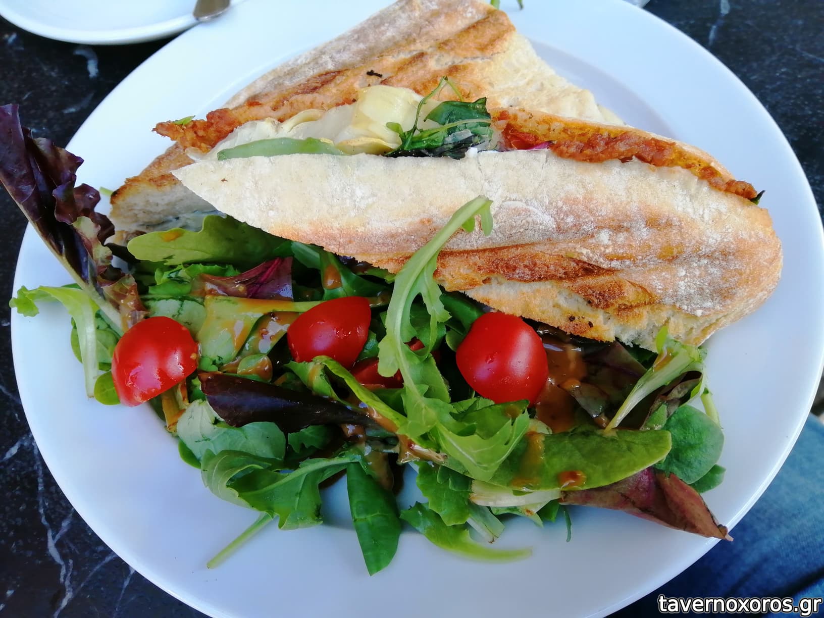 Anti (sun dried tomato pest w. walnuts, artichoke hearts, rocket, chevre, side salad)