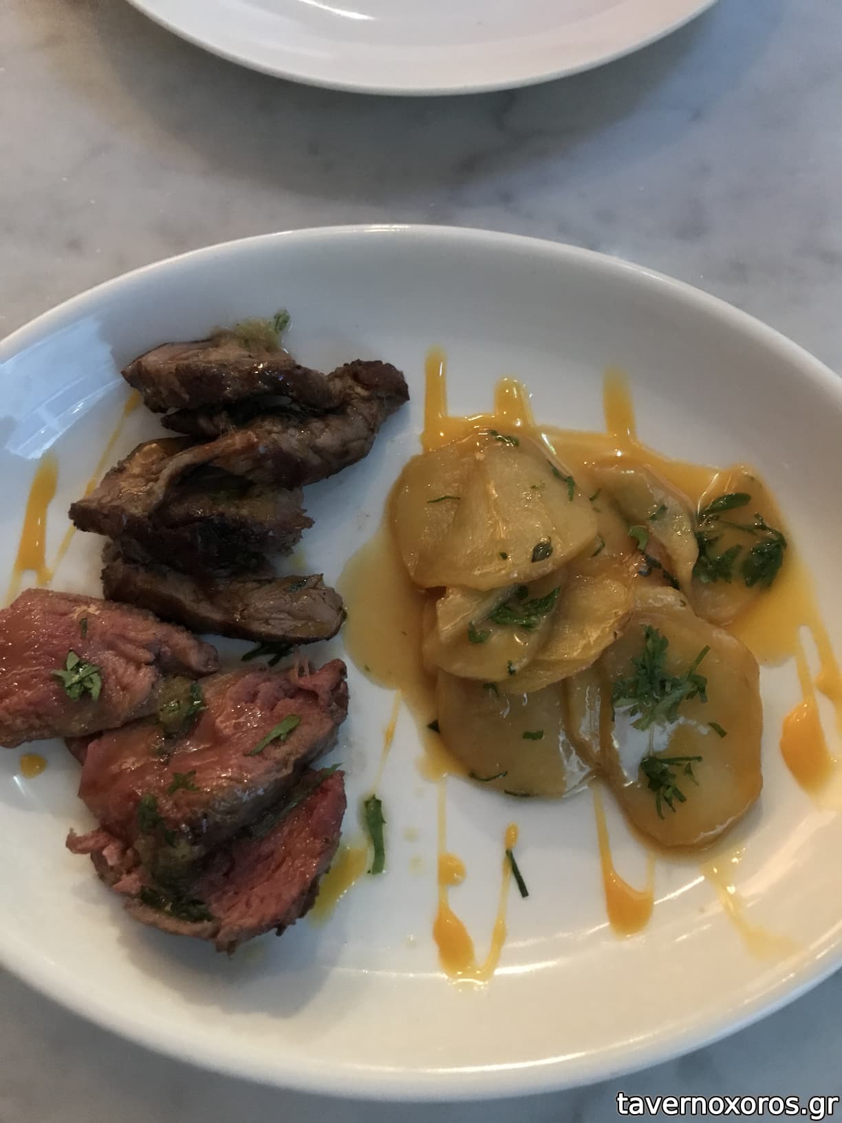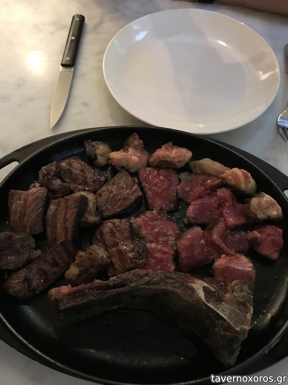 Πραγματικά, το κρέας είναι γεμάτο γεύση, λίγο σκληρό -αλλά όχι σε δυσάρεστο βαθμό, και ψημένο όπως ακριβώς ζητήθηκε. Η τιμή του είναι λίγο τσιμπήμένη (χρεωνουν περίπου 100 ευρώ το κιλό) αλλά για το ύφος του μαγαζιού και την τοποθεσία, περιμένεις ότι θα τα σκάσεις λίγο περισσότερο έτσι και αλλιώς.