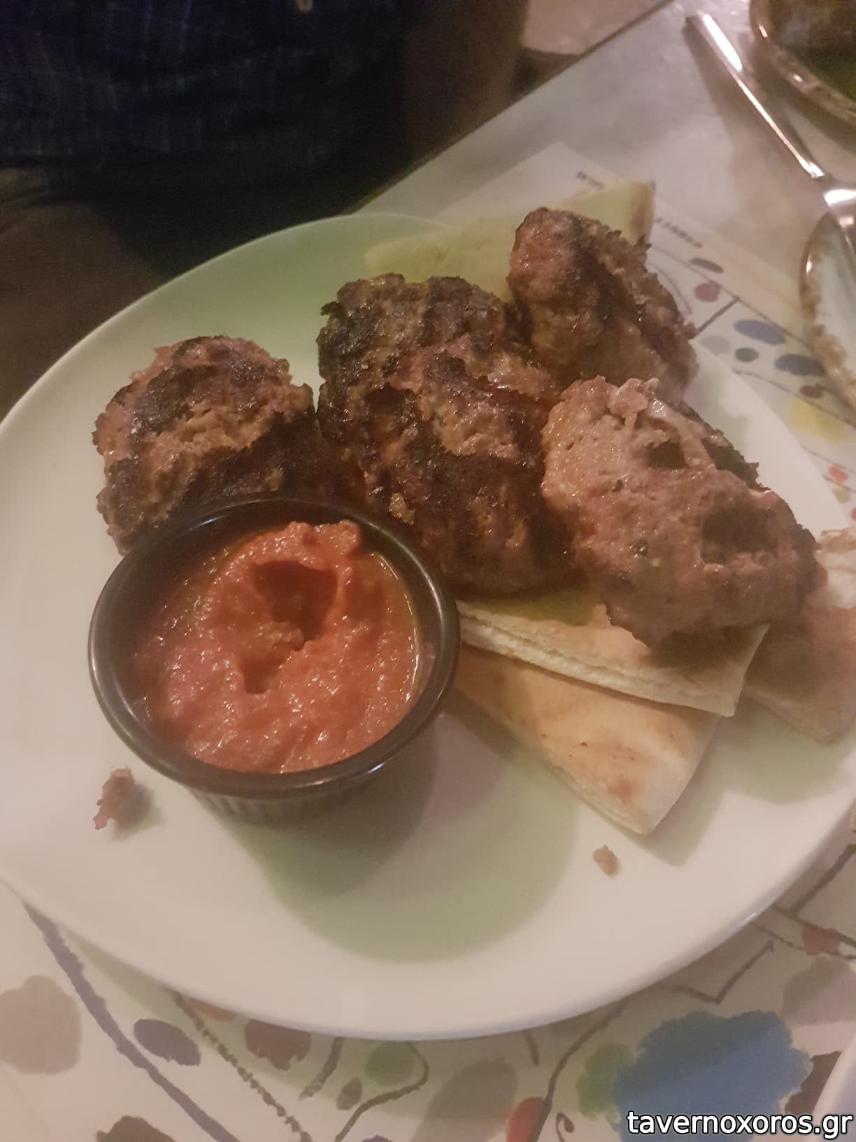 "Πικάντικα αρνίσια κεμπάπ με ντιπ πικάντικης ντομάτας" (νόστιμα)