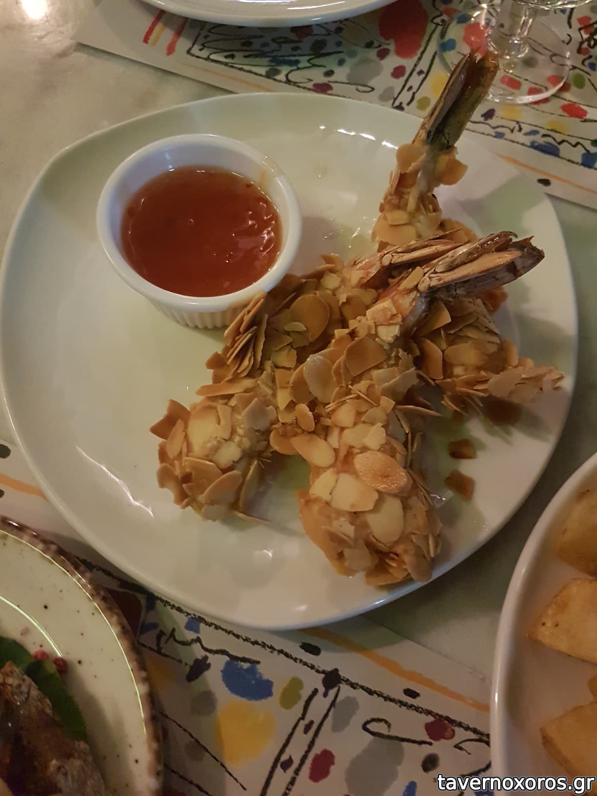 "Γαρίδες με κρούστα αμυγδάλου & σως ασιάτικη" (ΟΚ, η σως του εμπορίου)
