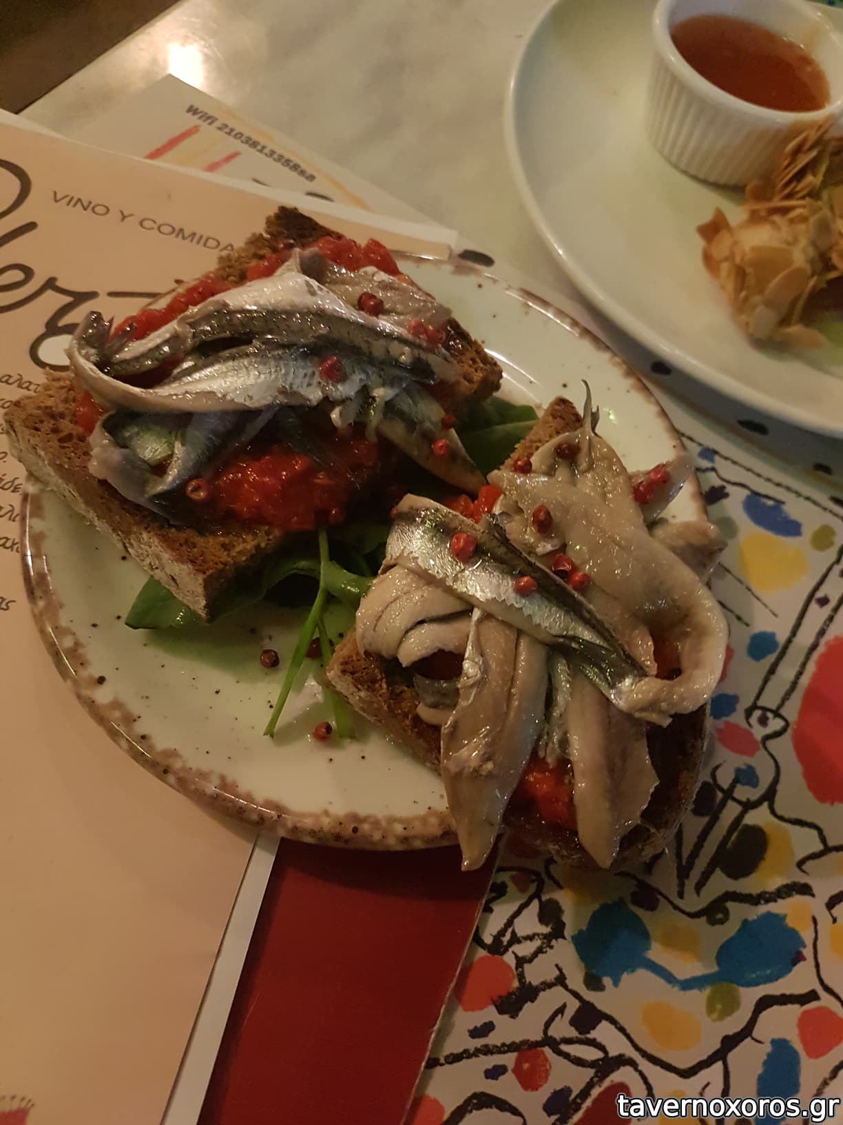 "Ψωμάκια με γαύρο μαριναρισμένο & κρέμα πιπεριάς" (μέτριο, ο γαύρος έφταιγε)
