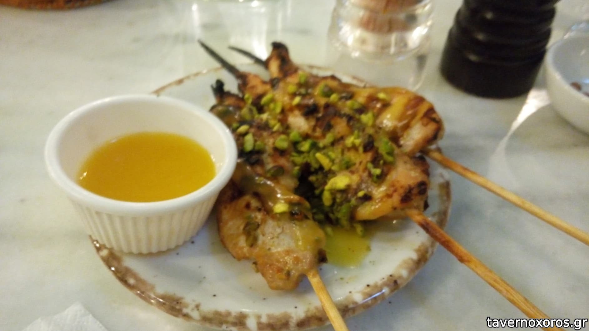 "Κοτόπουλο satay μαριναρισμένο σε γάλα καρύδας, λάημ και φυστίκι Αιγίνης"(μέτριο)