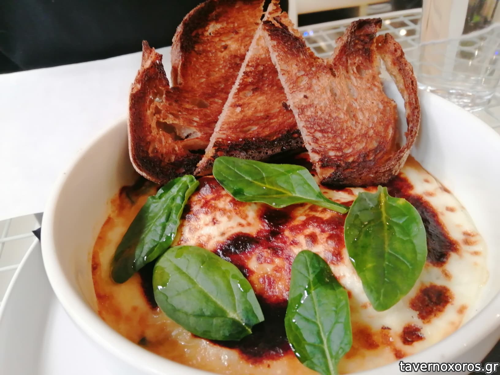 Αυγά ποσέ με σπανάκι και γκαρτιναρισμένη μοτσαρέλα