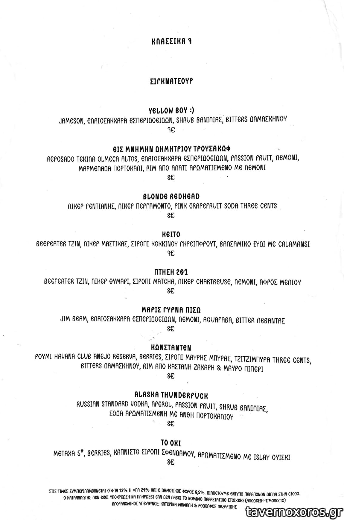 Τα παραπάνω σε καλές ποσότητες + 1 signature coctail στα 8ευρώ αν δεν κάνω λάθος (συμπαθητικό) = 29ευρώ.