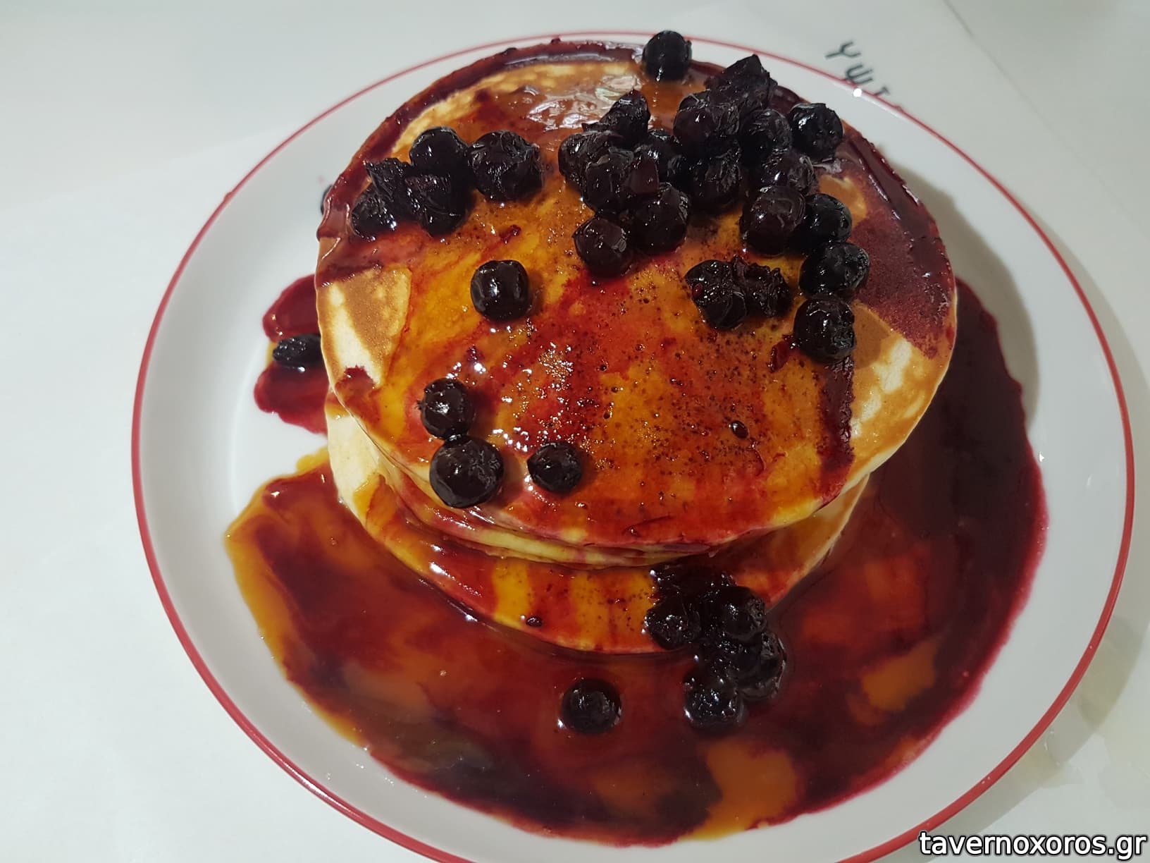 "Pancakes / με butterscotch + κόκκινα φρούτα" (λιγωτικό, η βουτυρίλα του butterscotch τα σκότωνε όλα!)
