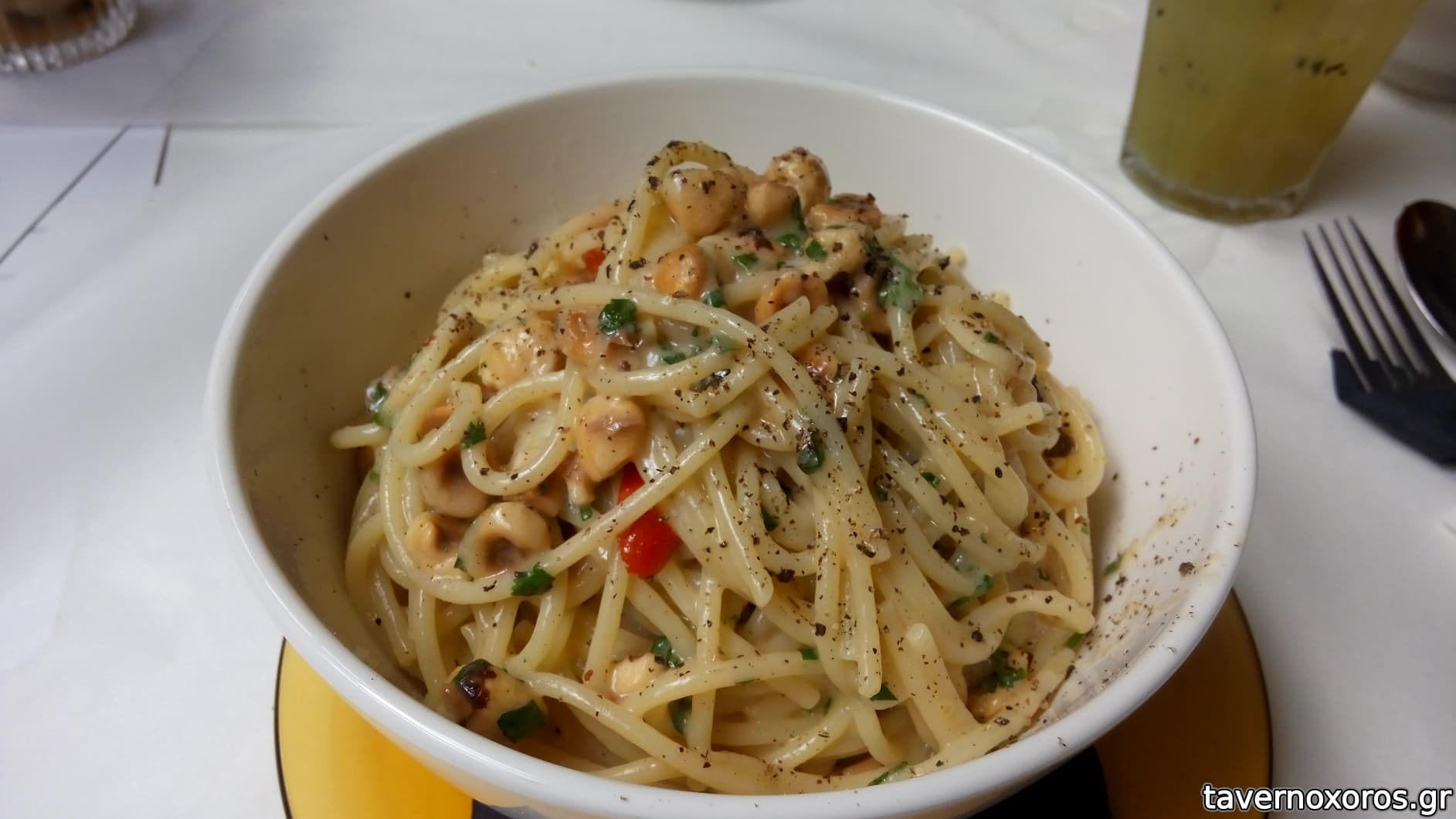 Σπαγγέτι με αντζούγιες, τσίλι, κόλιανδρο, σκόρδο, φουντούκι, παρμεζάνα, βούτυρο, μαϊντανό (πολύ καλά)