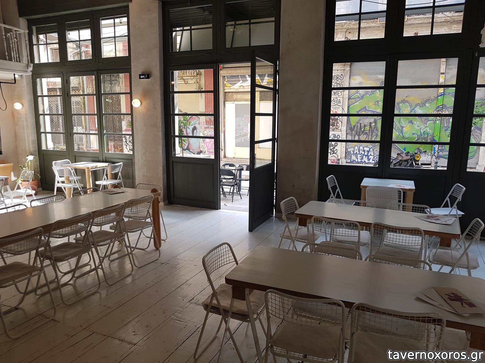 Ο χώρος είναι πολύ μεγάλος, χίπστερ αισθητικής, με τα τραπέζια τοποθετημένα αρκετά μεταξύ τους, τόσο μέσα, όσο κι έξω, και την επίπλωση να είναι εντελώς μινιμάλ. Προσωπικά το συγκεκριμένο μαγαζί, από άποψη αισθητικής, δε μου κάνει ούτε κρύο ούτε ζέστη, εκτός απ'