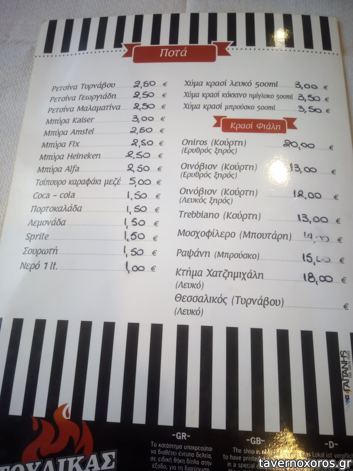 Γενικά πολύ καλή ταβέρνα που ξαναπάω ευχαρίστως. Υπόψη ότι καλοκαίρι οι σούβλες αραιώνουν, λόγω του ότι το χωριό λείπει στις καλλιέργειες καπνών (τους πήρα μια φορα το 17 και όντως δεν είχανε). Απόδειξη κανονικά, τιμές πολύ καλές.