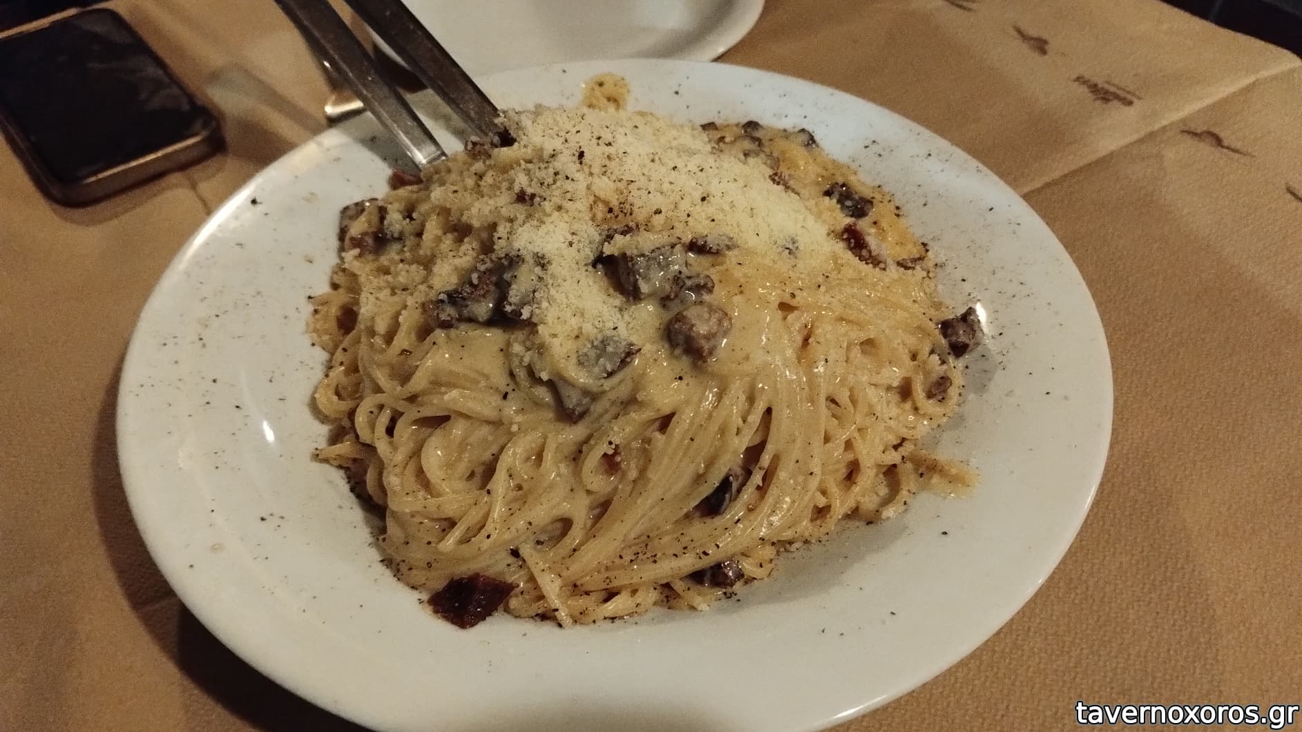 - Spaghetti aglio olio με πικάντικο αλαντικό: Αρκετά καλή και creamy απόδοση με την παρμεζάνα κα το αλαντικό.