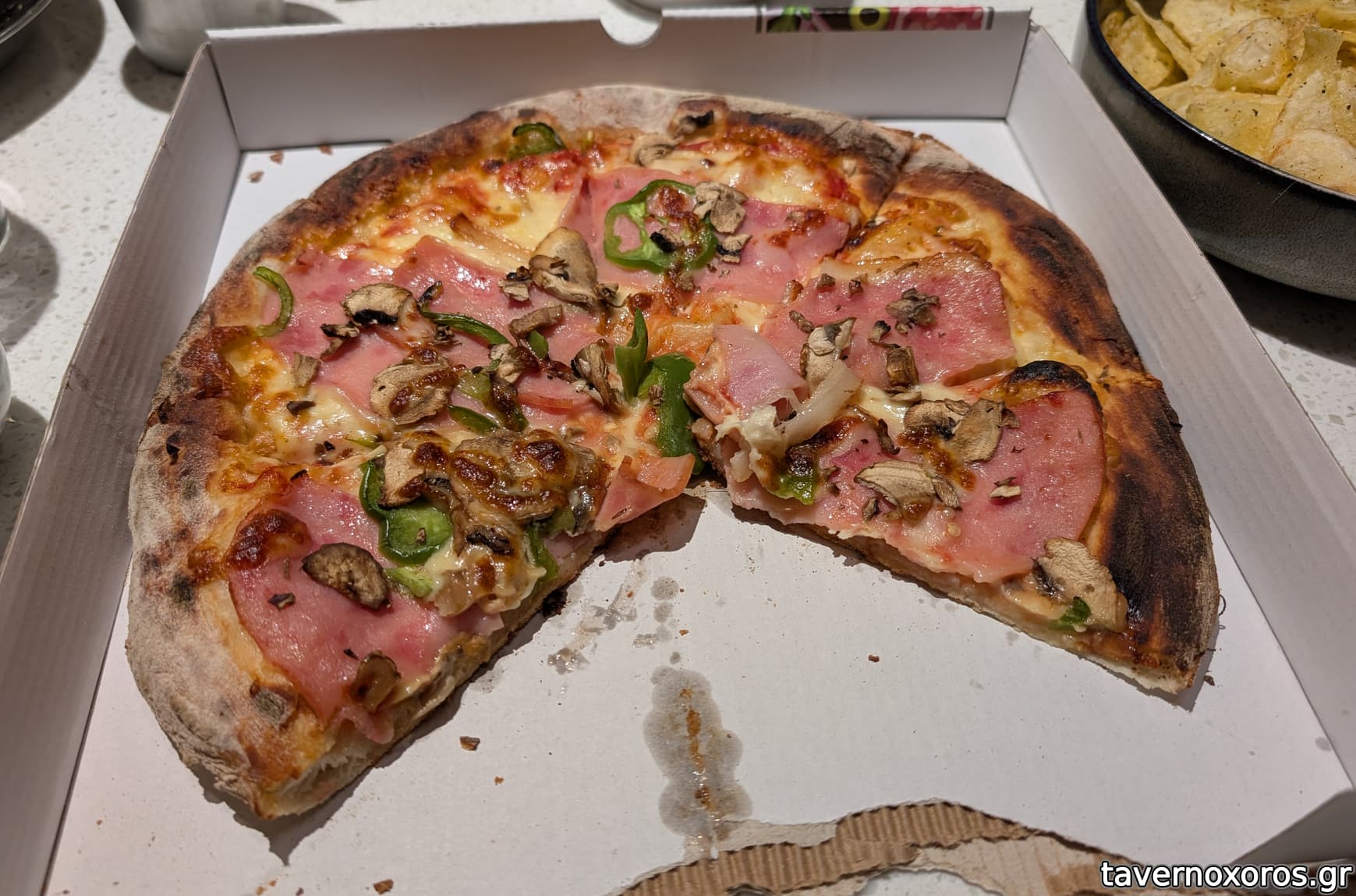 Νοστιμη, λεπτη και τραγανη ζυμη, εντονη και ισορροπημενη γευση απ τα υλικα.