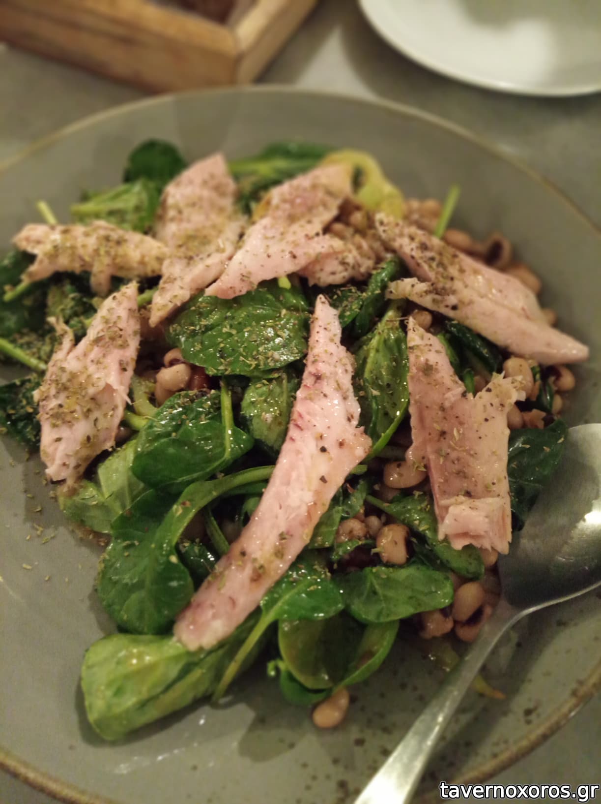 Πέστροφα με μαυρομάτικα φασόλια (μου άρεσε πολύ)
