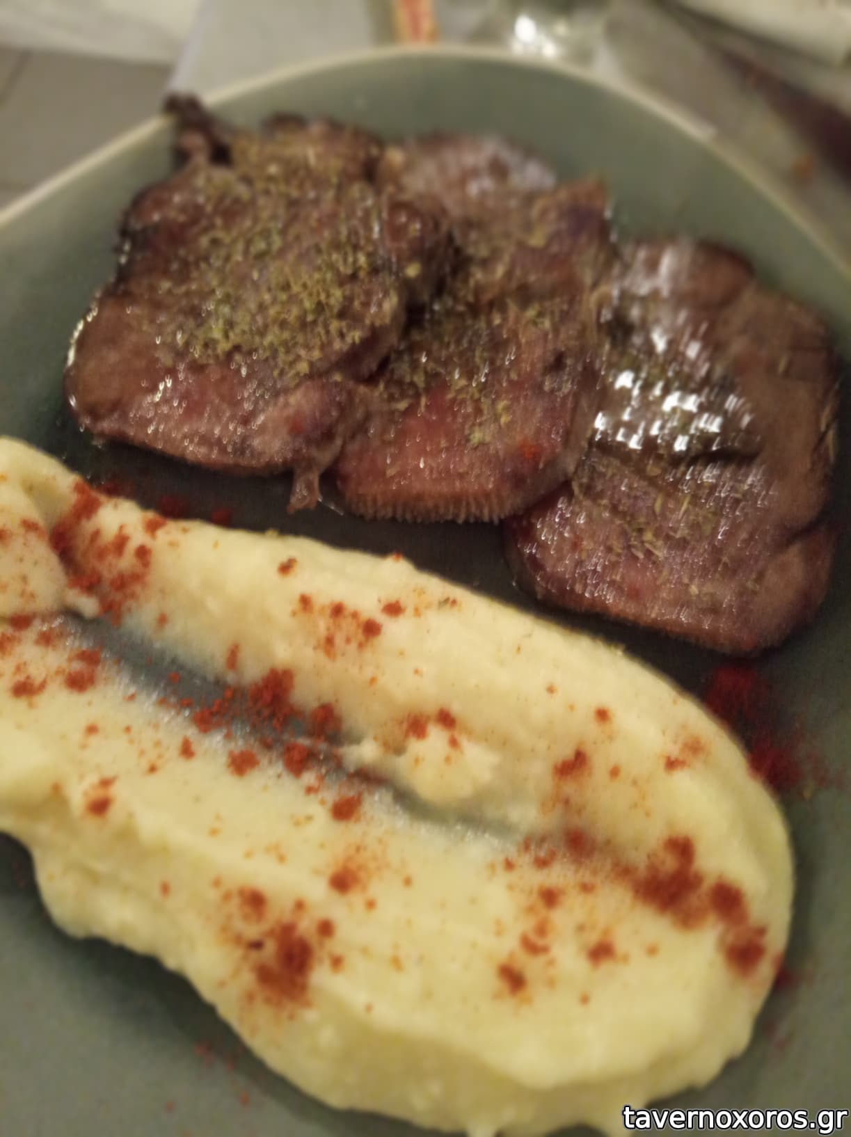 Γλώσσα μοσχαρίσια με πουρέ (οκ, μού έρχεται πολύ λιπαρή)