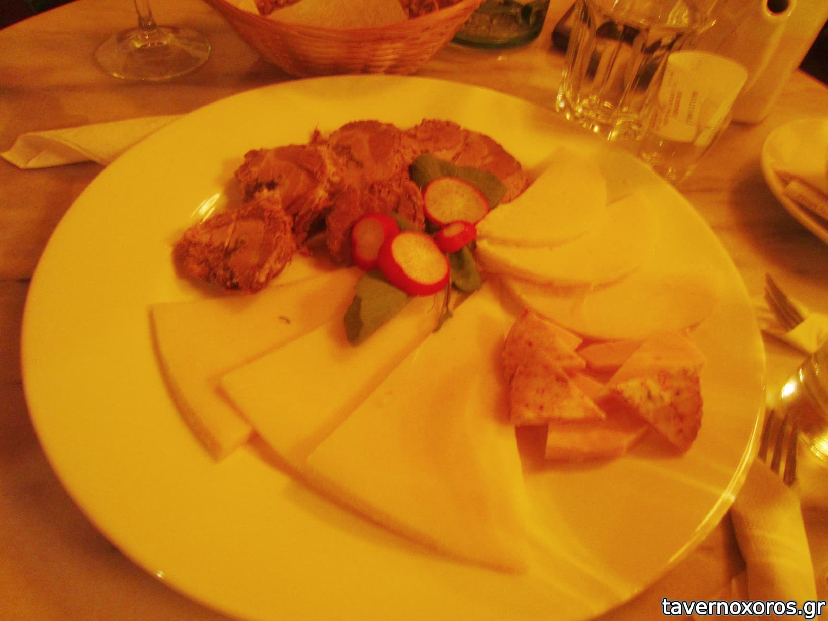 Κρύο πιάτο: ποικιλία τυριών και ρολό (πολύ καλό, αλλά τσιμπημένο, στα 10€ Ιανουάριος 2012)
