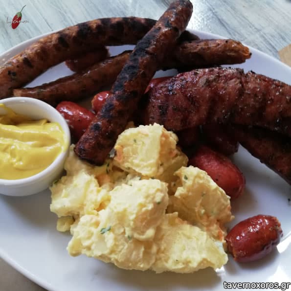 Ποικιλία λουκάνικων με πατατοσαλάτα (πολύ καλά και νόστιμα)