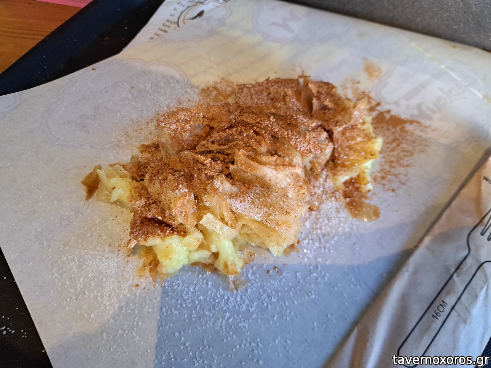 Το φύλλο κάπως λαστιχωτό. Η κρέμα αρκετά αγλυκη. Κανονική ζάχαρη αντί για άχνη και δεν μπορώ να πω ότι με ενθουσίασε αυτό. Ουσιαστικά η ζάχαρη από πάνω έδινε την οποία γλυκα στη μπουγάτσα.