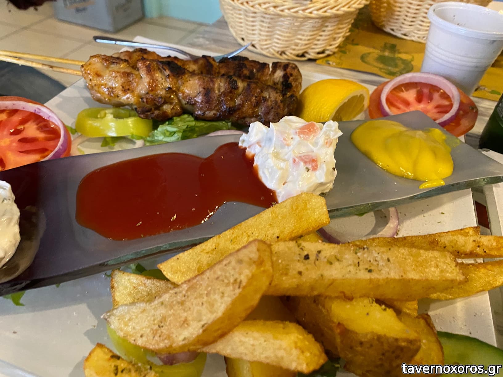 Το μαμ: Οι μερίδες είναι γενικά πολύ μεγάλες. Έχω δοκιμάσει μερίδα καλαμαράκια που ήταν στην ουσία για δύο άτομα, ενώ είχε και σαλάτα. Εξαιρετικότατα!! Ταμπουλές πάρα πολύ καλός, πατάτες τηγανιτές τις περισσότερες φορές καλές. Ντολμαδάκια μέτρια, κολοκυθάκια οκ. Μπιφτέκι γεμιστό πολύ νόστιμο, το ίδιο και το σουτζουκάκι.