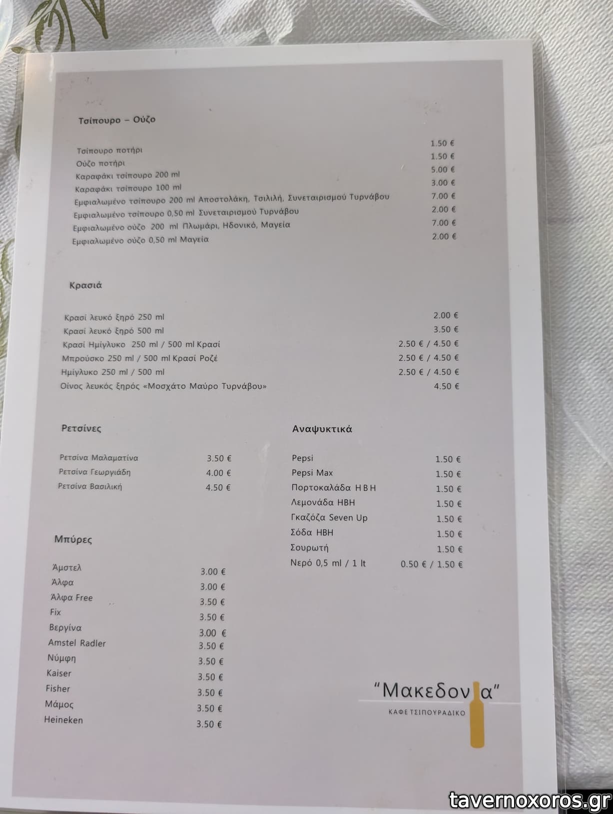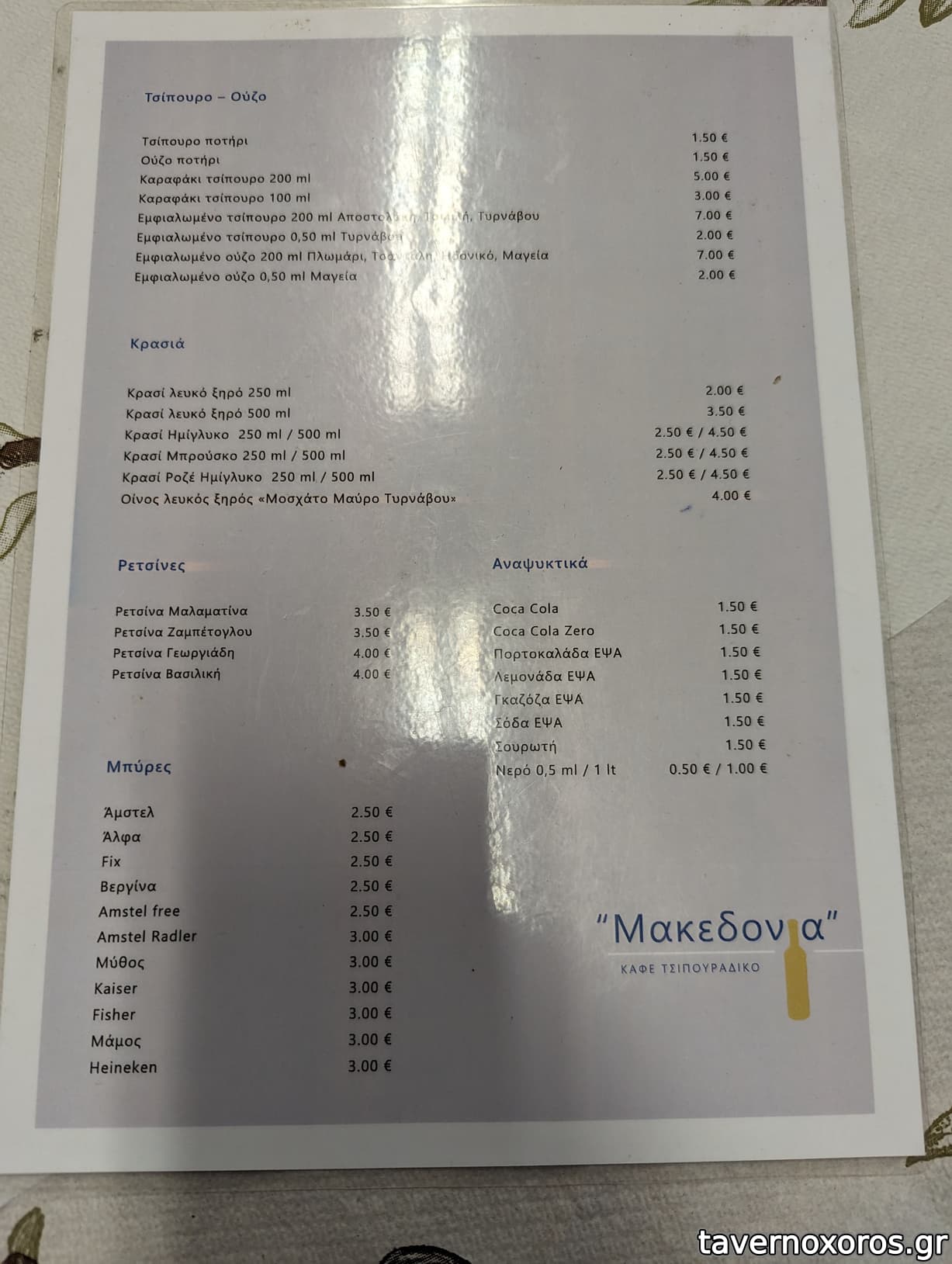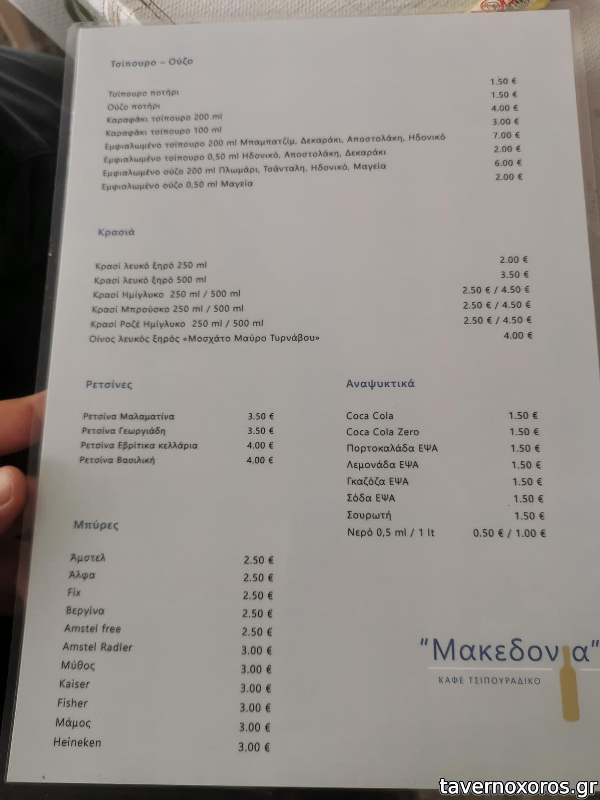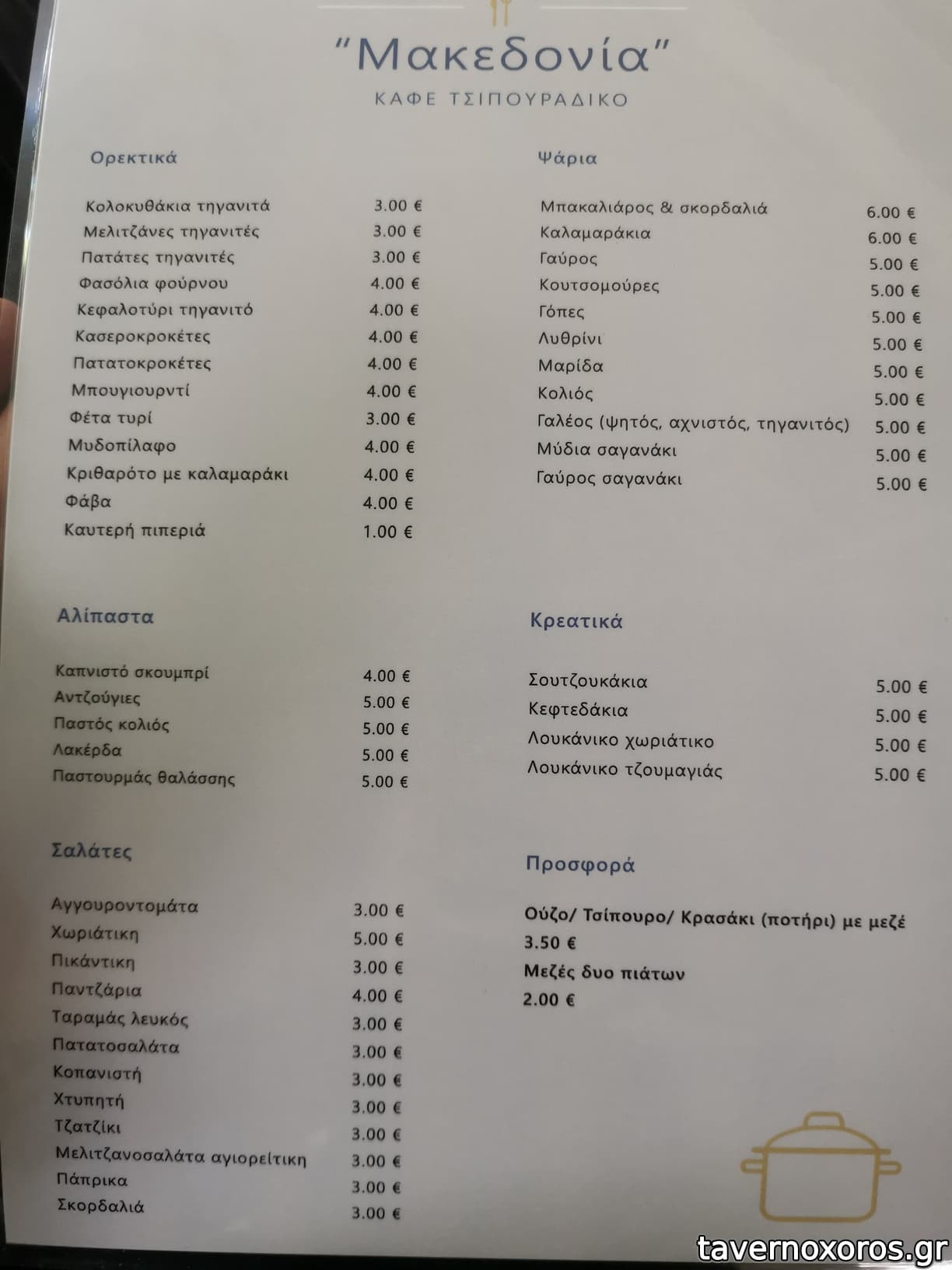 Το αλκοόλ του είναι χωρίς παρενέργειες ενώ οι στάνταρ μεζέδες του με το τσιπουράκι είναι οι κλασσικοί καφενειακοί,