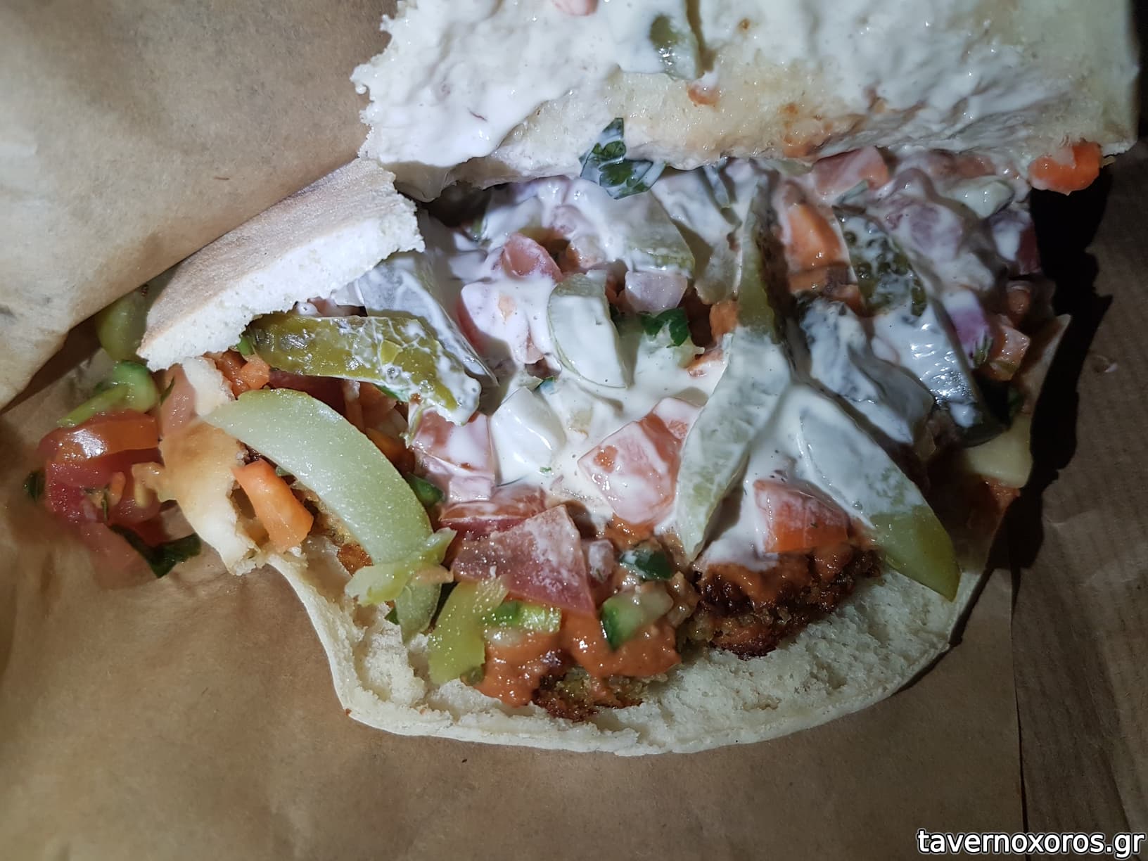 Επίσης χρησιμοποιούν ωραία πίτα, όχι την τυπική προκάτ αραβική που κυκλοφορεί στην πιάτσα.