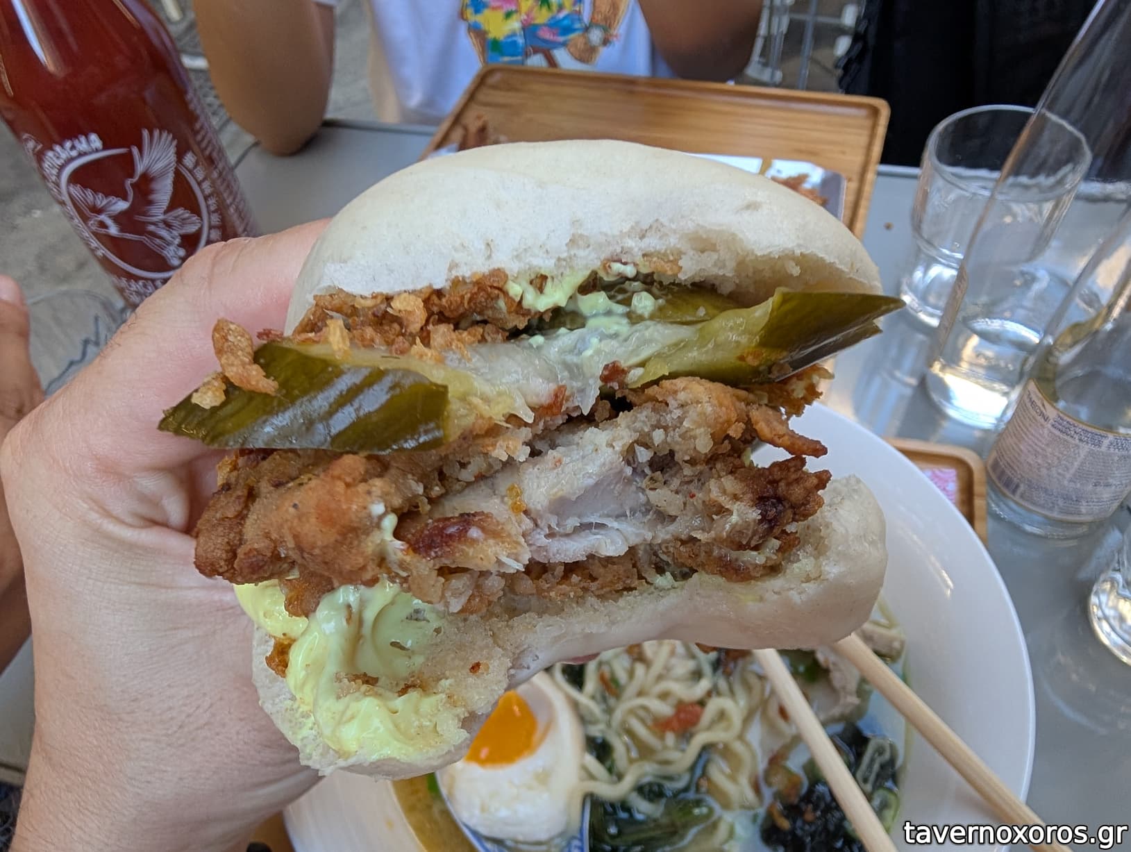 Bao burger με κοτόπουλο (νοστιμότατο, η μερίδα αποτελείται από 2 τεμάχια)