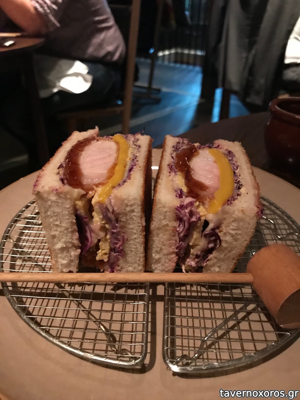 Tonkatsu sandwich, dashi maki tomago, red cabbage, whole grain mustard (καλό)