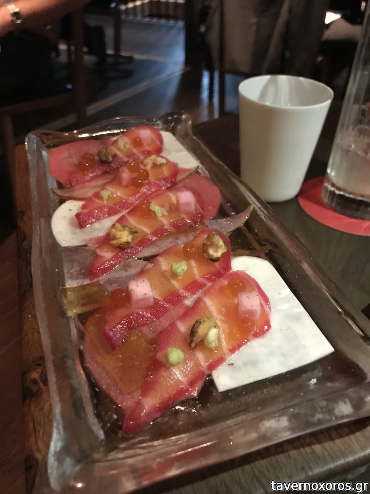 Bergamot cures Scottish salmon, Tokyo turnip, wasabi jelly (καλό)