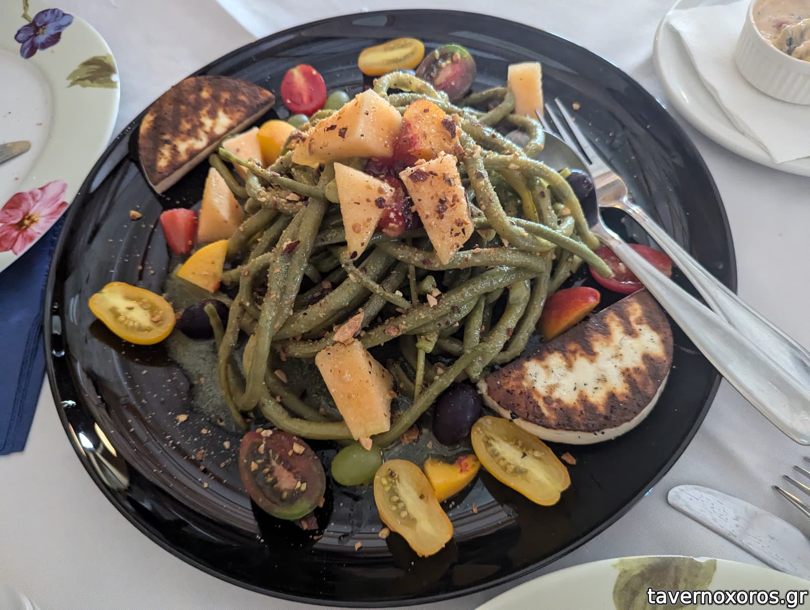 Μπάμιες τηγανητές (αδιάφορες, τα φρούτα δεν ταίριαζαν, η αλοιφή δεν ήταν η πλέον κατάλληλη)