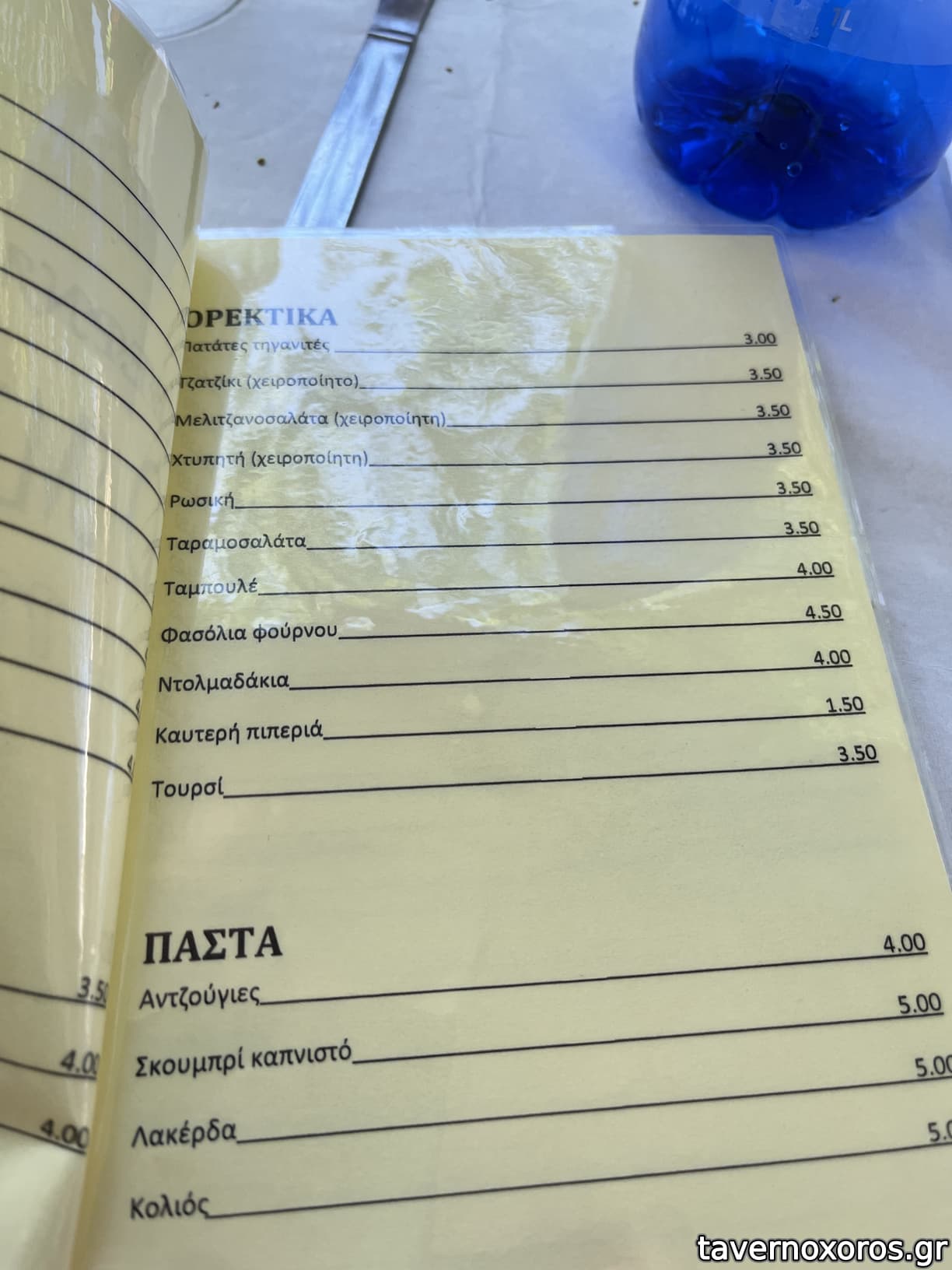 Μαζί με 2 μπύρες, 1 νερό και ένα καραφάκι κρασί, σύνολο 20 ευρώ το άτομο.