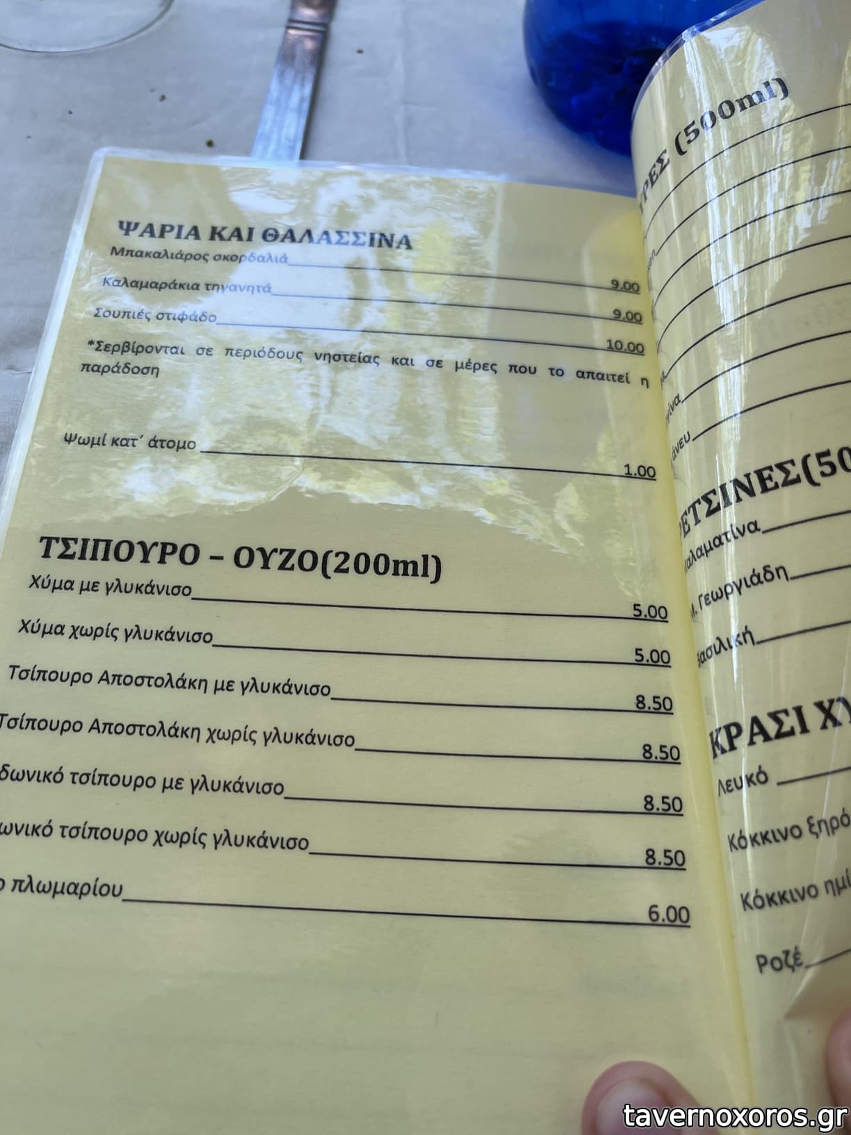 ΤΙΜΕΣ: τα παραπανω πιατα (στις παρενθεσεις οι ποσοτητες) + 6 μισολιτες βεργινα + 1 μισολιτρη πρασινη + τσιπουρο (δεν θυμαμαι ποσοτητα) 124ε, 17,