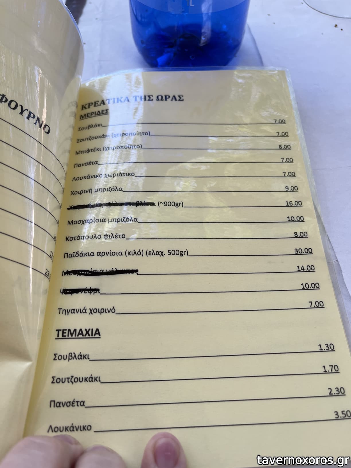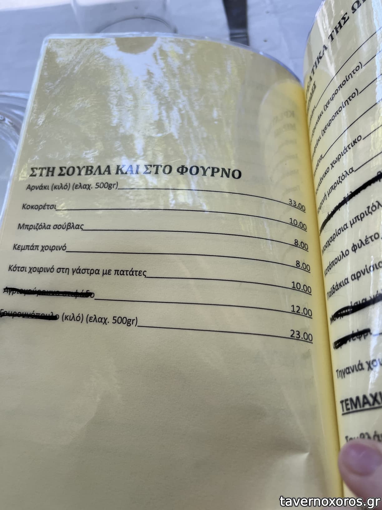 καλα: κοκορετσι(χ2), αγριογουρονο στιφαδο με καστανο, κοτσι, μοσχαρισια μπριζολα, φετα, πατατες τηγανιτες χερατες(χ3), πολιτικη(χ2)