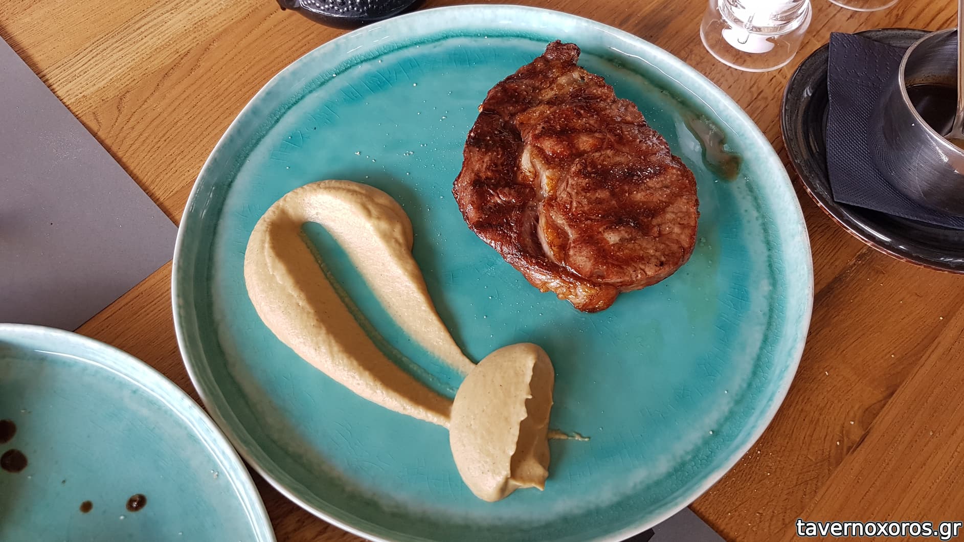 Ένα ribeye black angus με πουρές μελιτζάνας (Το κρέας πολύ καλό όπως επίσης και ο πουρές μελιτζάνας).