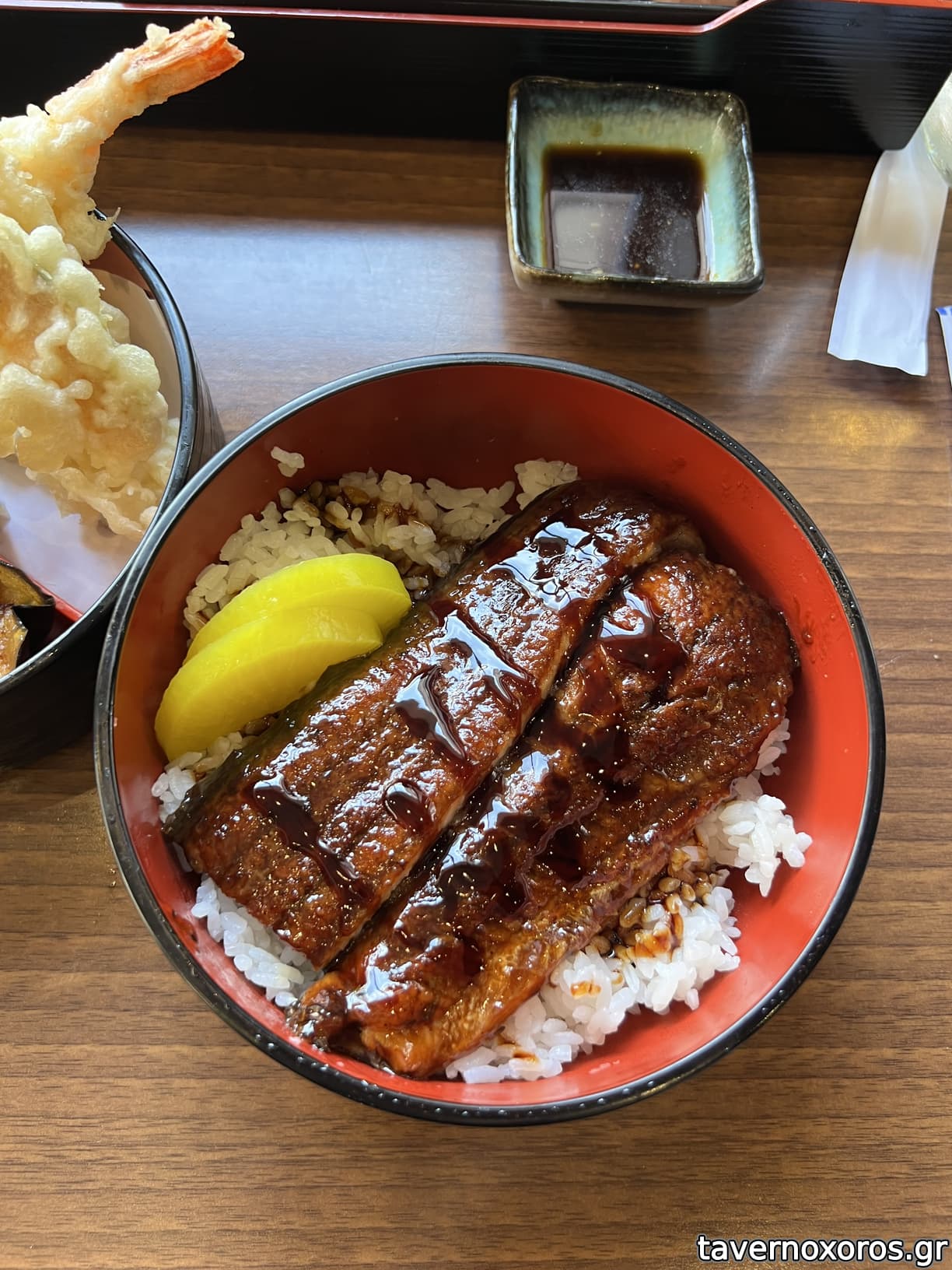 Ψητό χέλι και αυγά και σπανάκι με γιαπωνέζικο ζουμί (ενδιαφέρον)