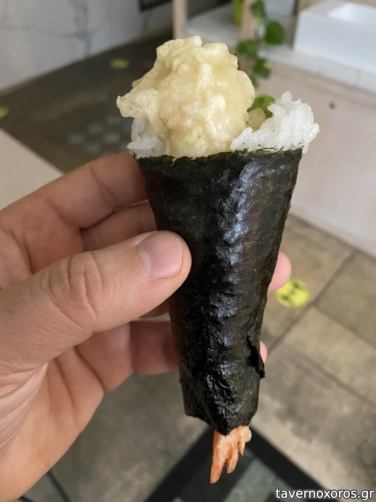Shrimp tempura & avocado onigiri (καλό)
