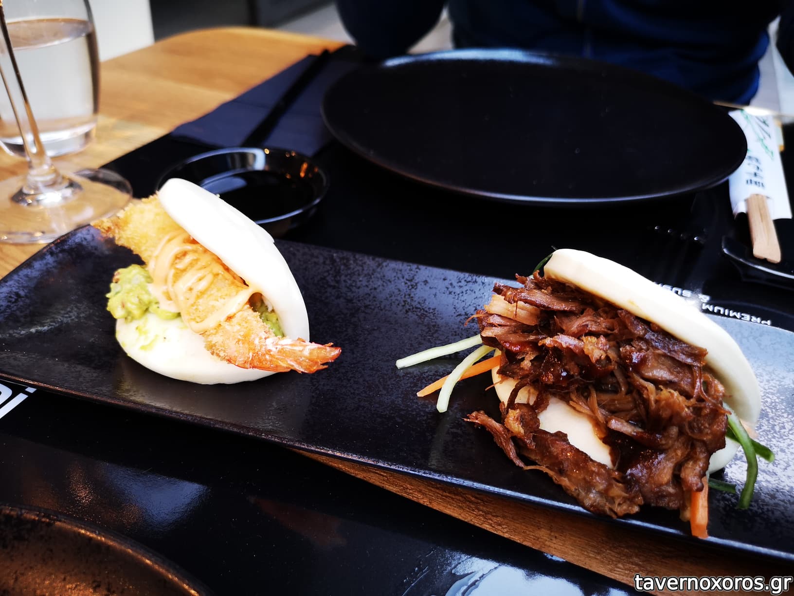 BAO με γαρίδα tempura (αριστερά) & μπουτάκι πάπιας (δεξιά) (ok, με τη γαρίδα καλύτερο)