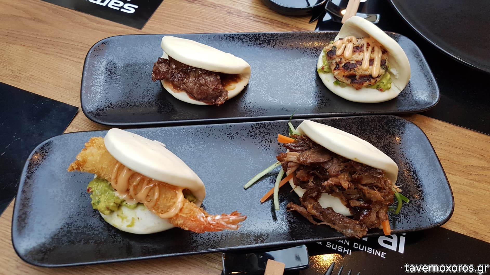 BAO μοσχαρίσιο rib-eye (αριστερά) & burger θαλασσινών (δεξιά) (ok, το rib-eye καλύτερο)