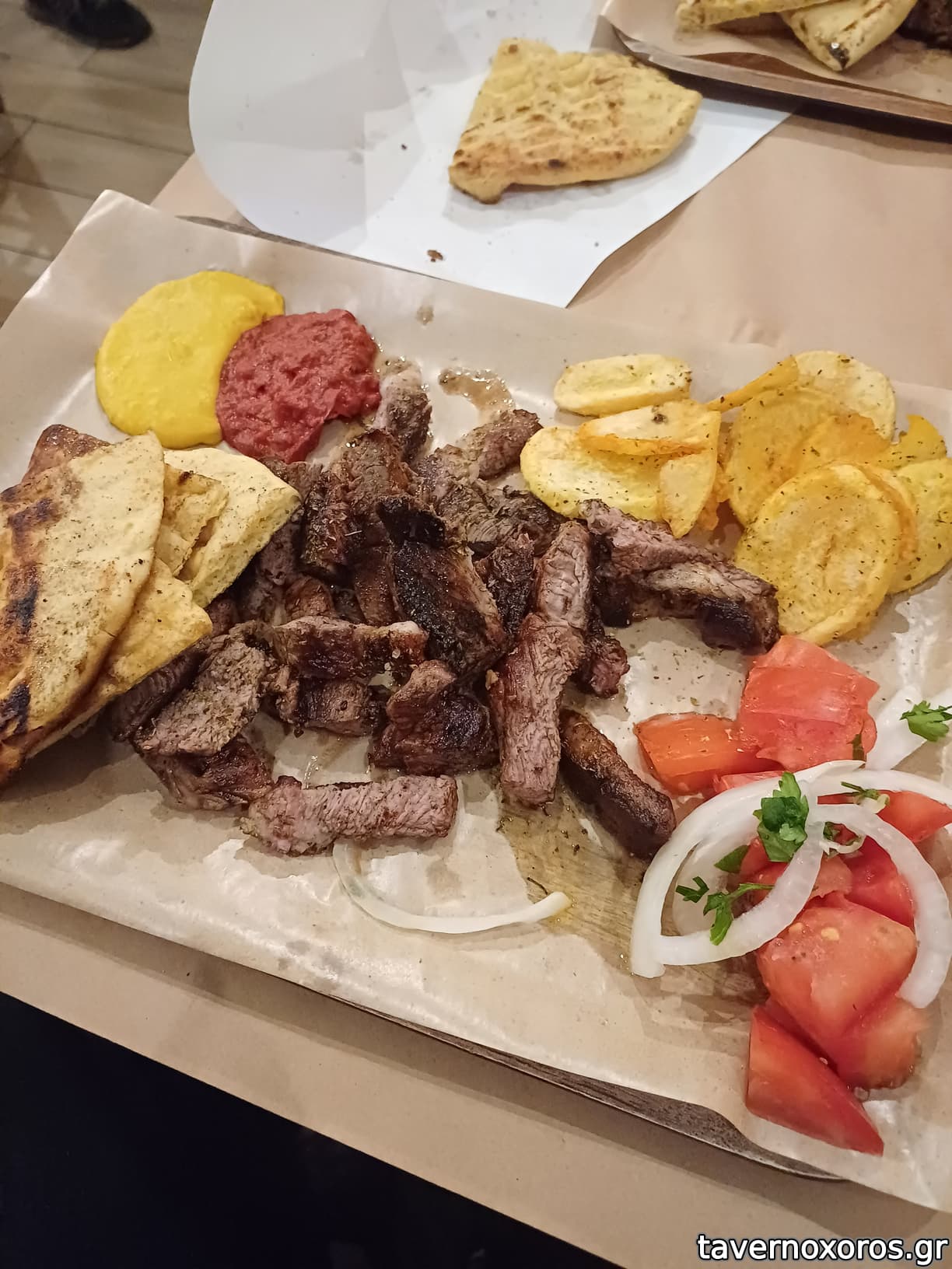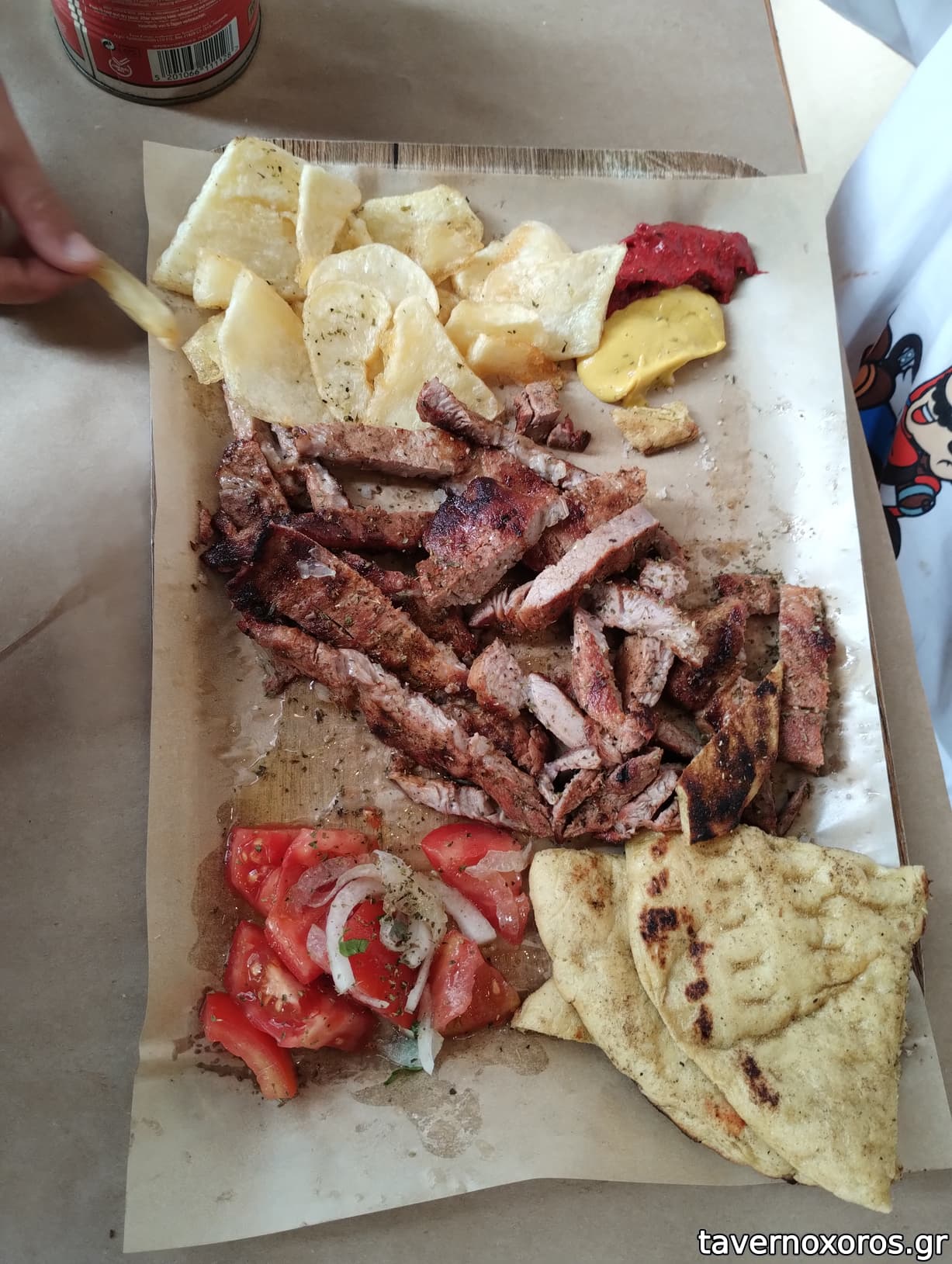 Δεν μου άρεσε το κρέας ήταν ξεψαχνισμενο και επειδή ήταν μαγειρεμένο ήταν πολύ μαλακό με αποτέλεσμα να μην μου κάθεται καλά με την ελληνική πίτα.. Ίσως ήθελε μια πιο λεπτή πίτα σε στυλ αραβικής για να νιώθω και την υφή του κρεατος.. Επίσης και κάποια από τα χοιρινά κοψίδια είχαν πολύ λίπος..