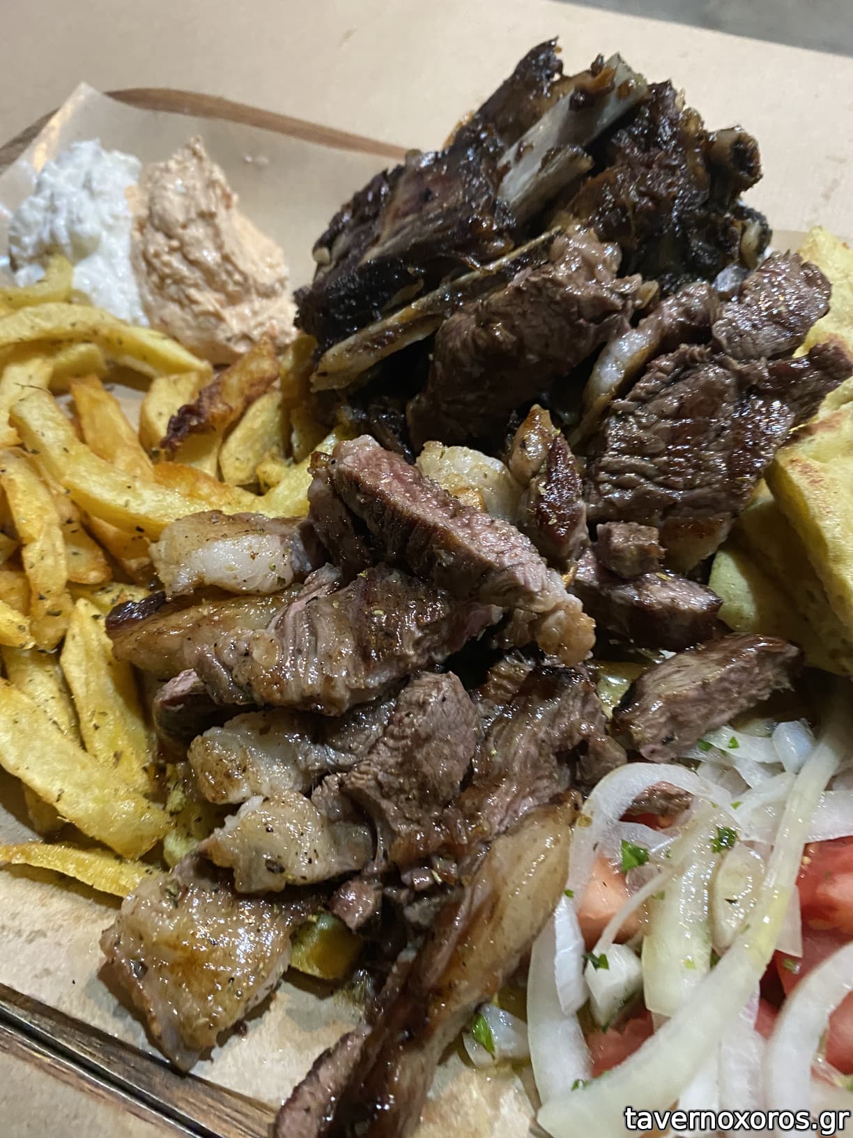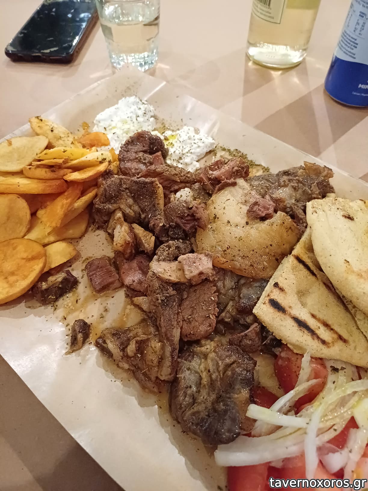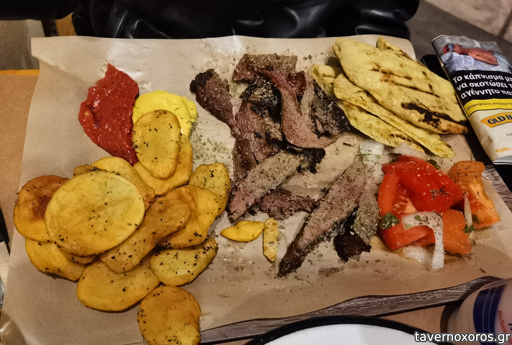 Στο δια ταύτα, πήραμε μερίδες, όλες με γαρνιτούρα (πατάτες, πίτα, ντομάτα, αλοιφή).