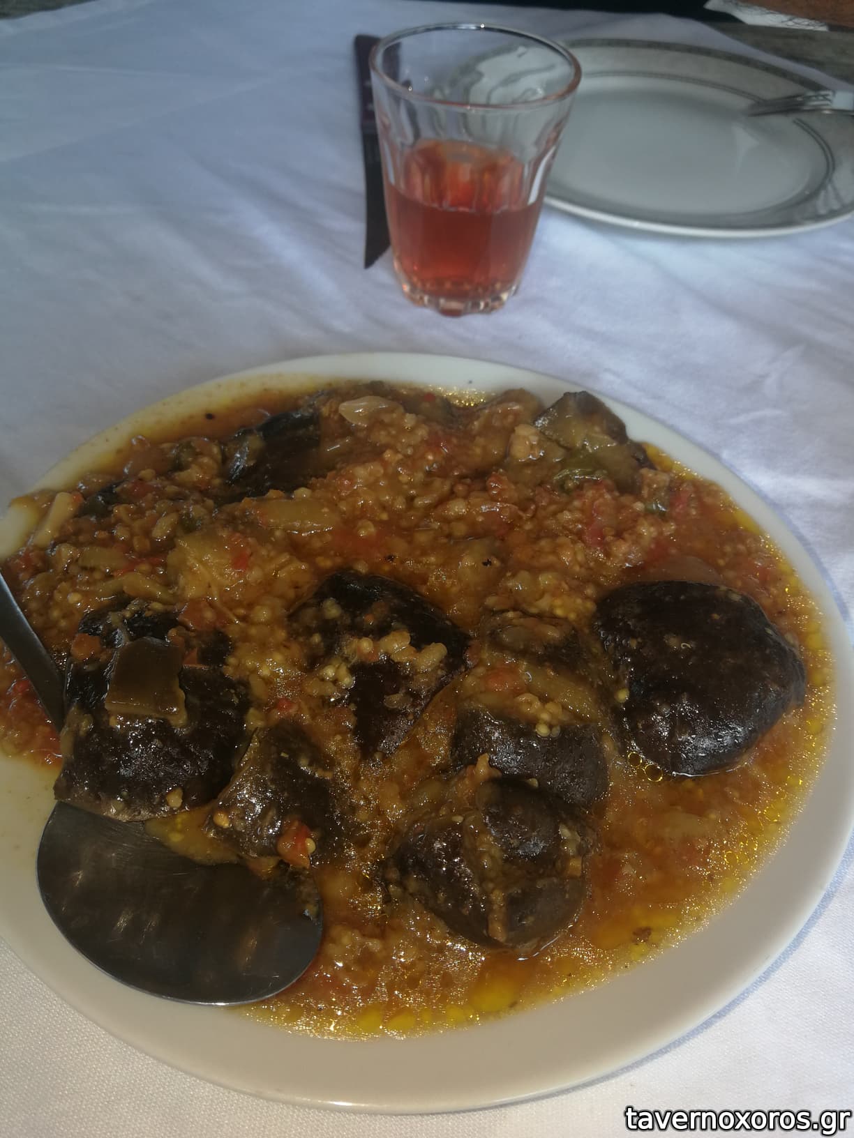 Μελιτζάνα στην στόφα με ξυνόχοντρο (υποδειγματική χορτοφαγία)