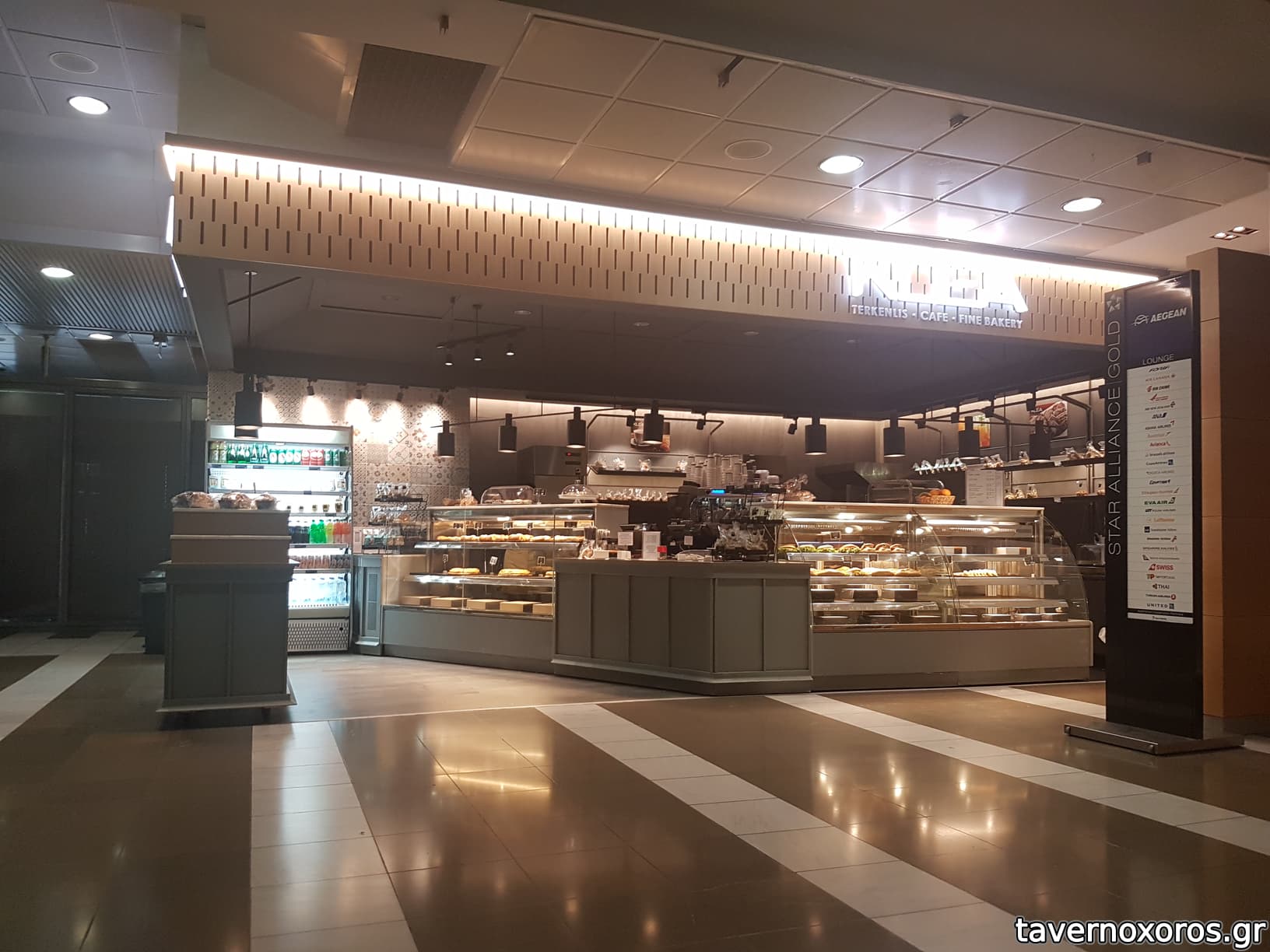 Βρίσκεται στο Terminal 1, μετά τον έλεγχο των αποσκευών.