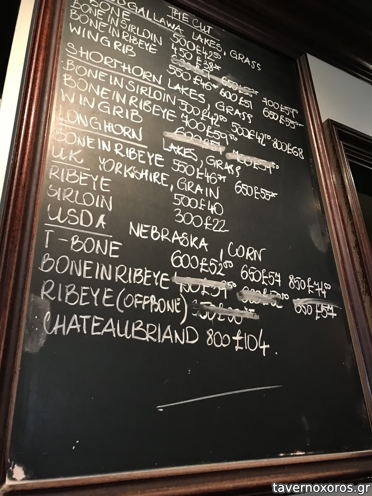 Με άλλα λόγια, οι μπριζόλες δεν ήταν τόσο καλές αυτή την φορά. Επίσης είχε όπως φαίνεται επί τούτου μόνο ακριβές επιλογές στον πίνακα (δεν έβρισκες κοπή κρέατος κάτω από 60 λίρες το άτομο). Γενικά νομίζω έχει ξεφύγει λίγο σε τιμές.