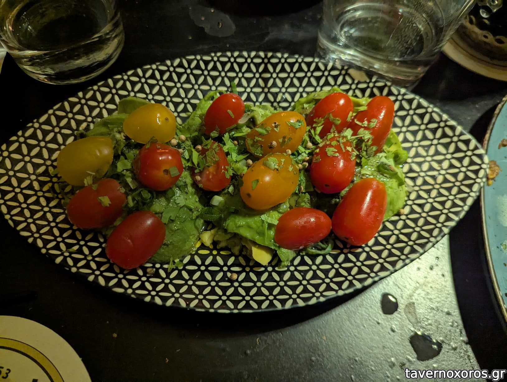 "Αβοκάντο με φρέσκο κρεμμυδάκι, ντοματίνια, μοσχολέμονο & κόλιανδρο" (καλό)