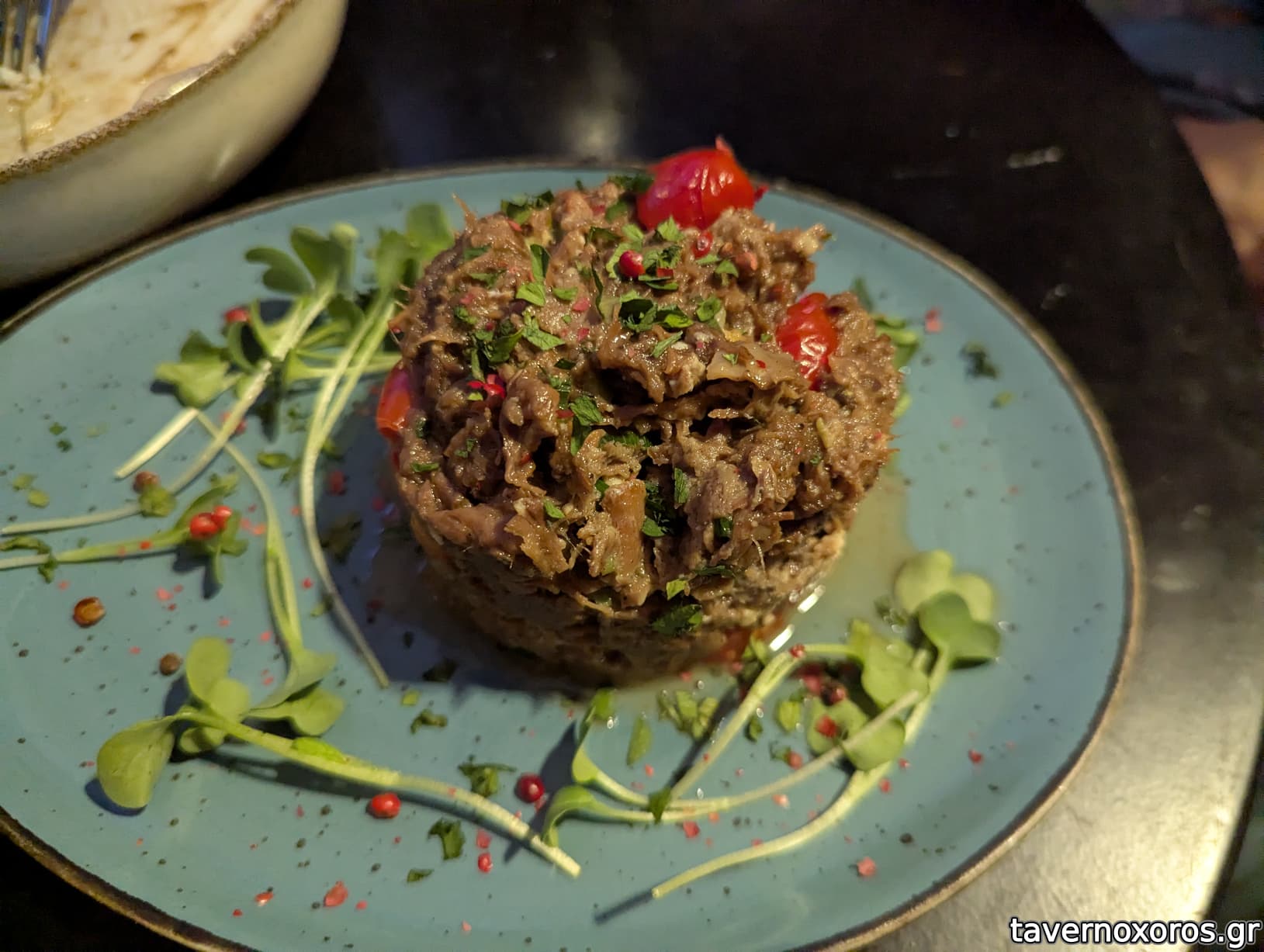 "Καβουρμάς σοτέ με φρέσκο κρεμμυδάκι, ντοματίνια & αυγό" (πολύ καλό)