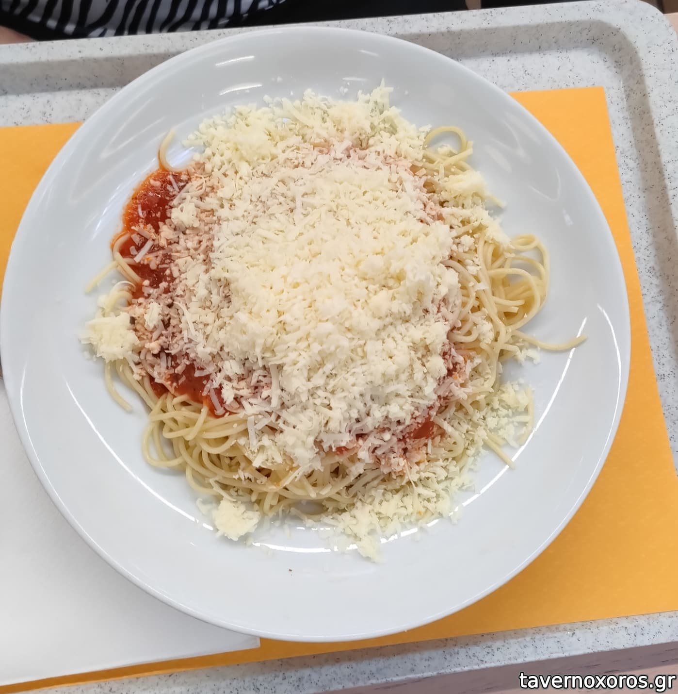 Μακαρόνια με σάλτσα και τριμμένο τυρί (πολύ καλά)