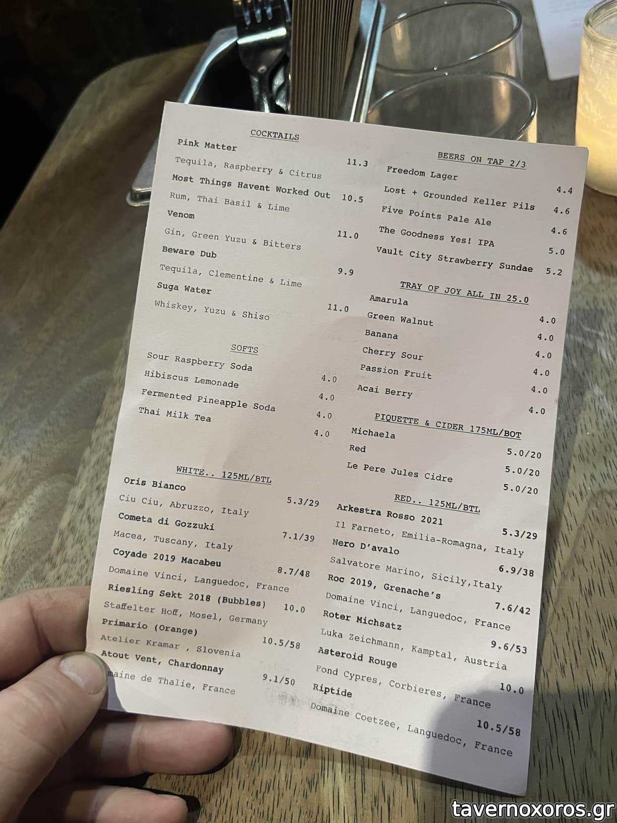 Γλυκά γιοκ, αλκοόλ πολλές επιλογές από βαρέλι μπύρα, κοκτέιλ, κρασιά κτλ.