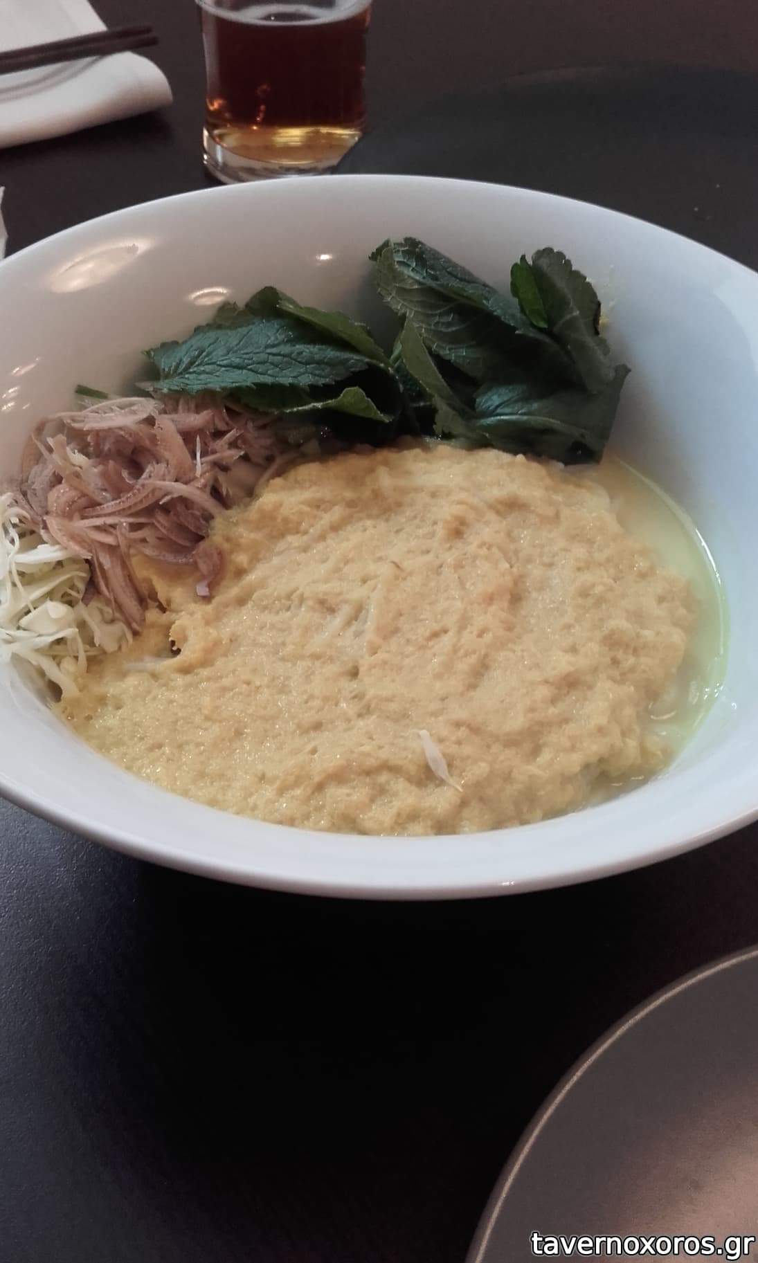 Ευγενικο και αποτελεσματικο σερβις σε ησυχη ημιυπογεια αιθουσα.Το μεσημερι σερβιρει μονο σαντουιτς και σουπες το βραδυ εχει κανονικο μενου.Sach koh ang σαντουιτς με ψημενο μοσχαρι σαλτσα kroeung και λαχανικα πολυ καλο,num banh chok somlor khmen σουπα noodles με ζωμο ψαριου,αποξηραμενο ψαρι,αγγουρι,ανθοι μπανανας και φυτρες οκ(δεν με κερδισε η γευση του αποξηραμενου ψαριου),kuytiev phnom penh σουπα με πλατια noodles,χοιρινο κιμα,κρεας και γιουβαρλακια,σουπια και γαριδες πολυ καλη,2 μικρες μπυρες=38 ευρω